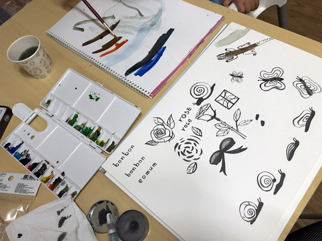 모처럼 봉봉과 함께 미술시간.