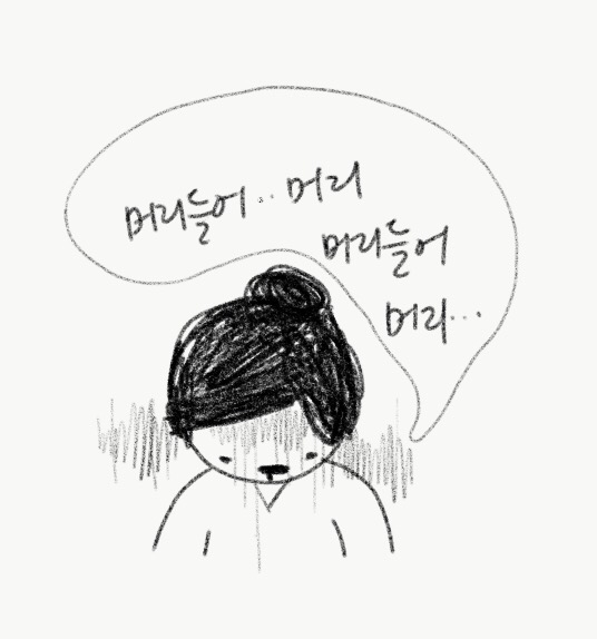 드라이기로 머리를 말려주는 새에 잠깐 잠이 들었었는지 순간 멈춤상태가 되는거다.