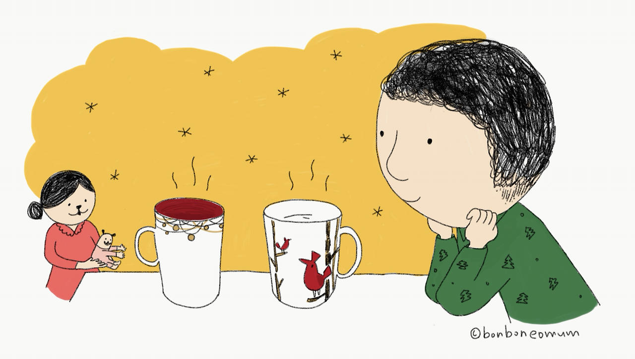 욥과 함께 큼지막한 머그컵에 따듯한 차를 담아