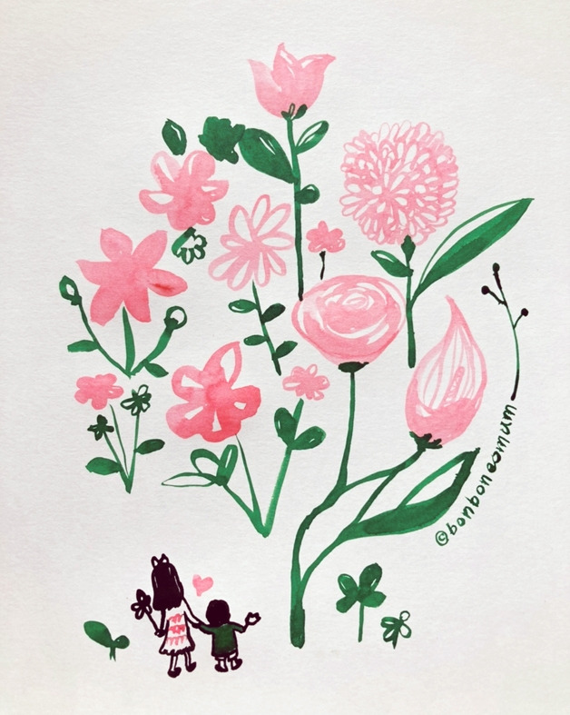 지나가버린 봄의 꽃들이 아쉬워 내일 아침 봉봉과 탱글이에게 보여줄 꽃들을 그려본다.