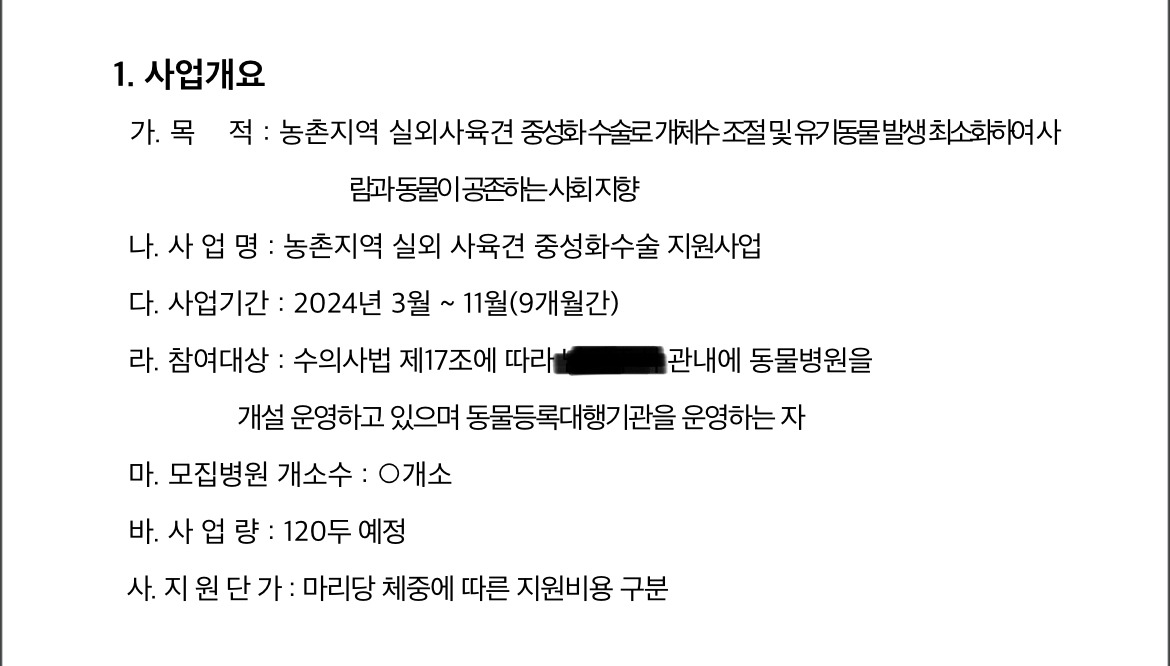머리로 아는 동물권과 현실은 역시 다르다. 당사자가 또 다른 임신과 출산을 원하건, 원하지 않건, 나는 <실외사육견 중성화 수술 지원 사업>을 알아보았다. 들개가 설치고 다니는 것을 막기 위한 예산.