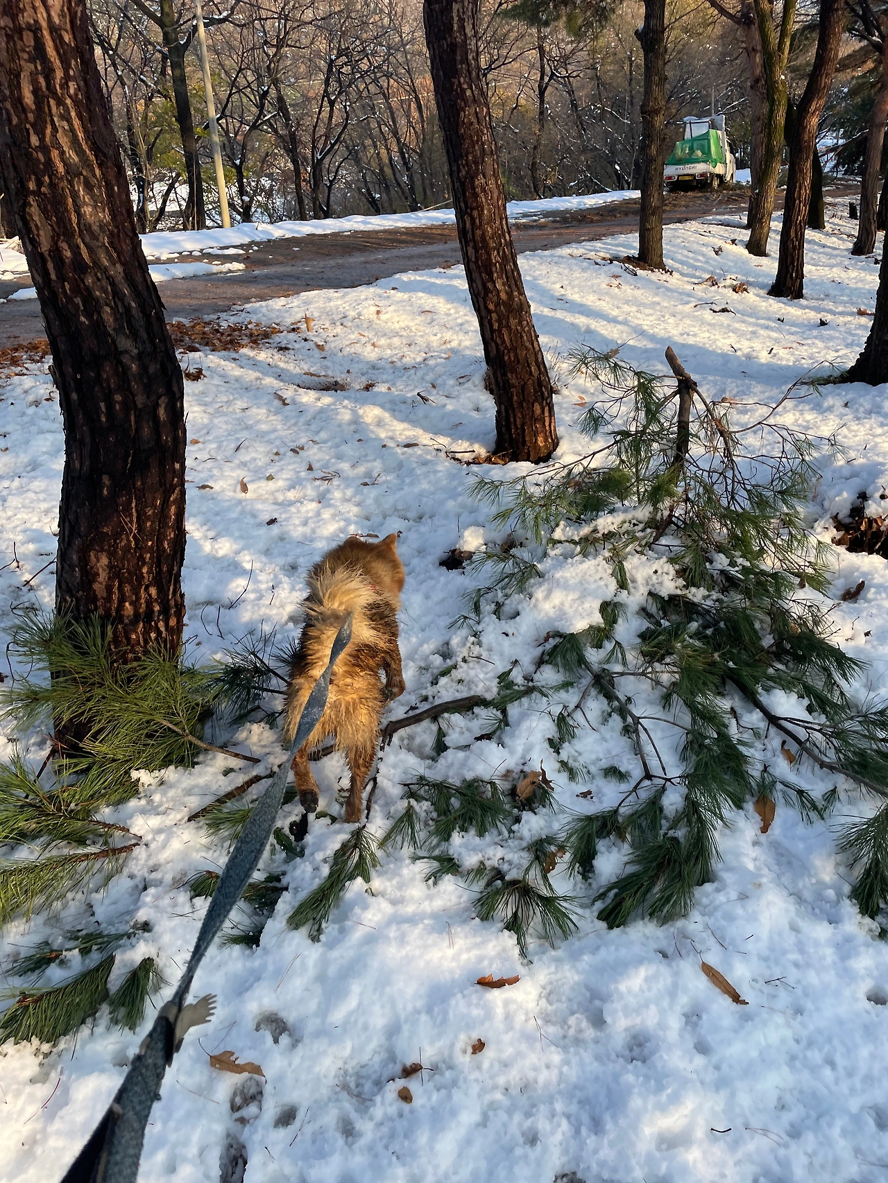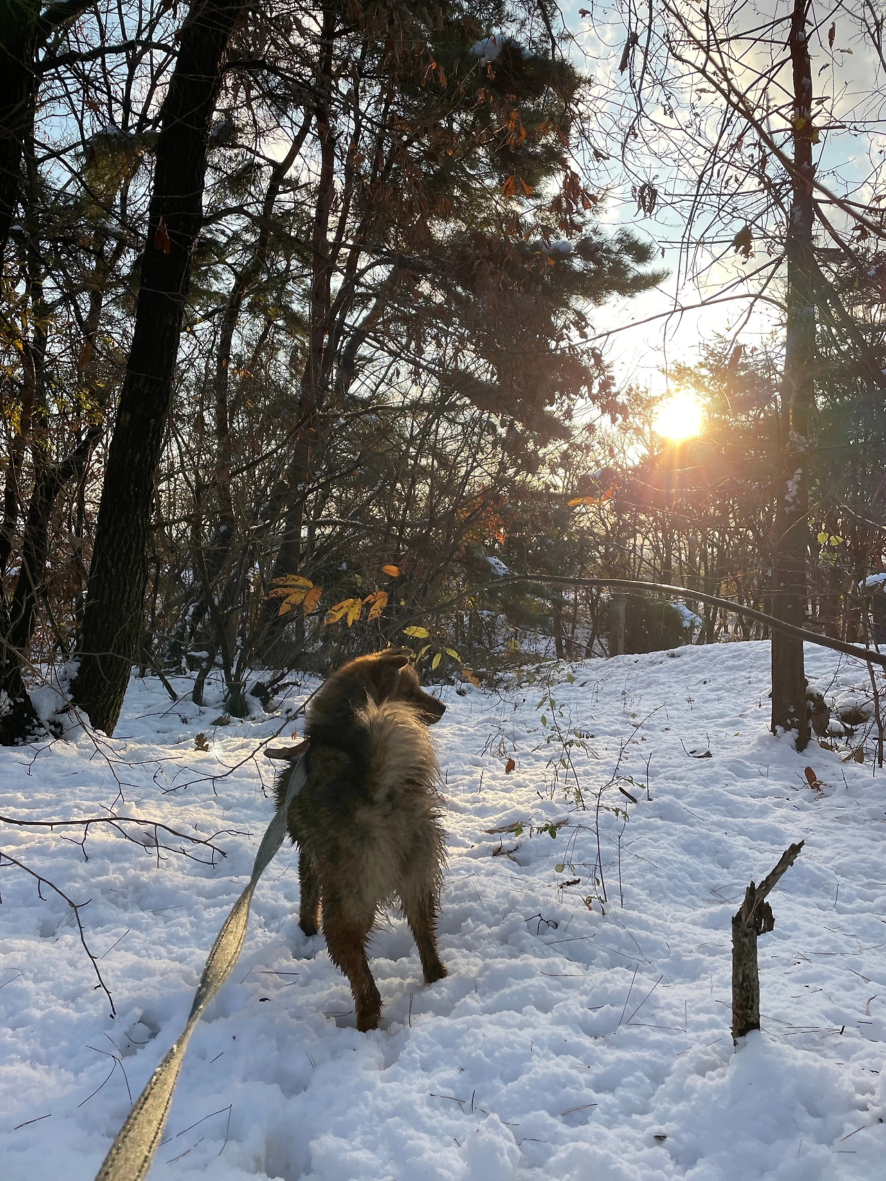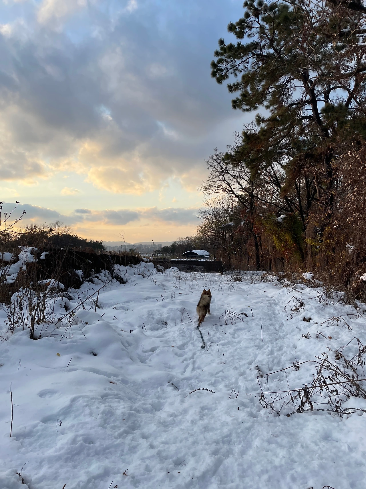 숯댕이와 산책을 나섰다. 언니의 털부츠를 신고 뛰니까 둔해져서 쿵쾅거리며 달렸다. 발이 푹푹 빠졌다. 숯댕이는 발이 시릴 텐데 자유로 인한 기쁨이 더 큰 것 같았다.