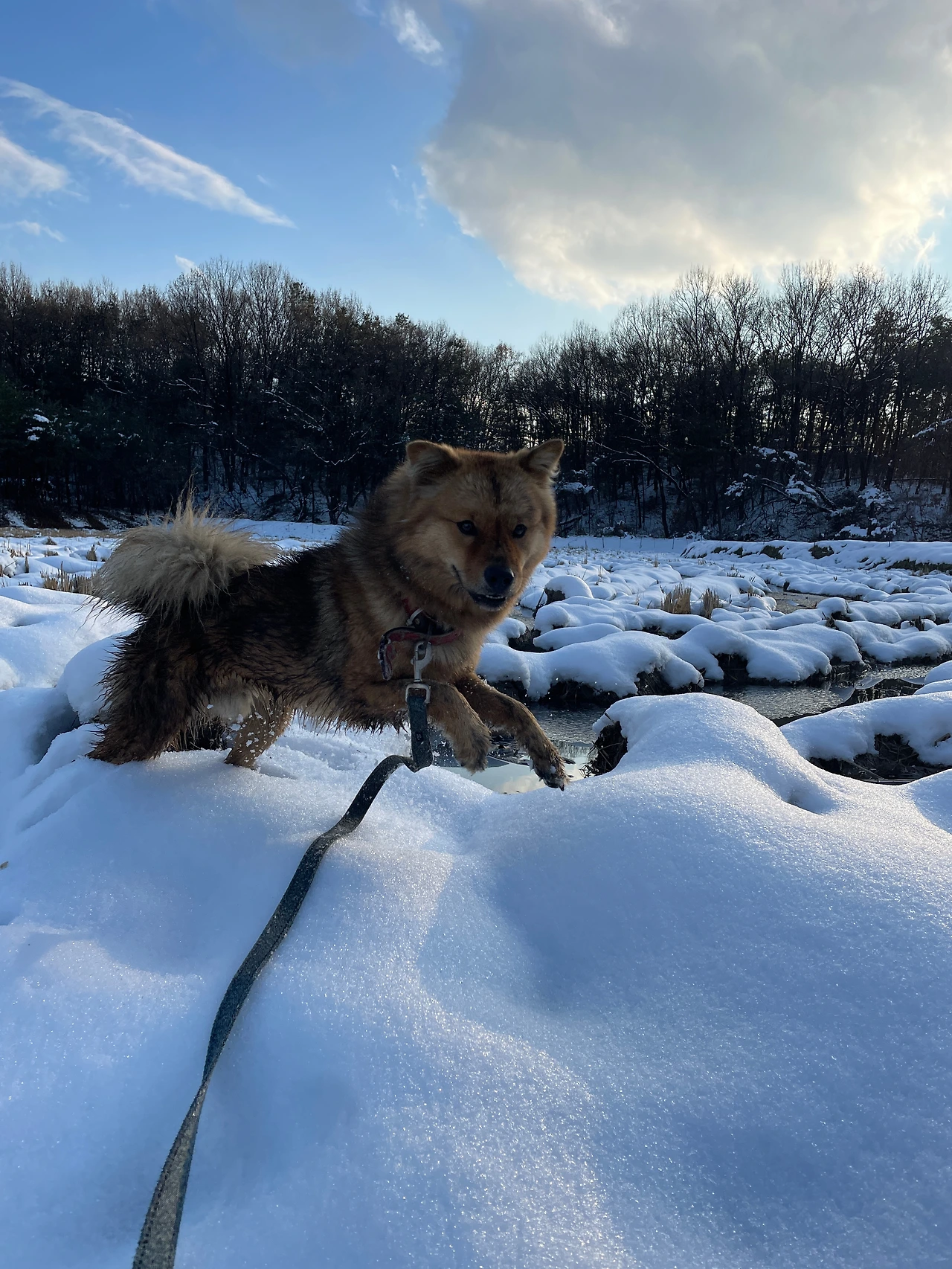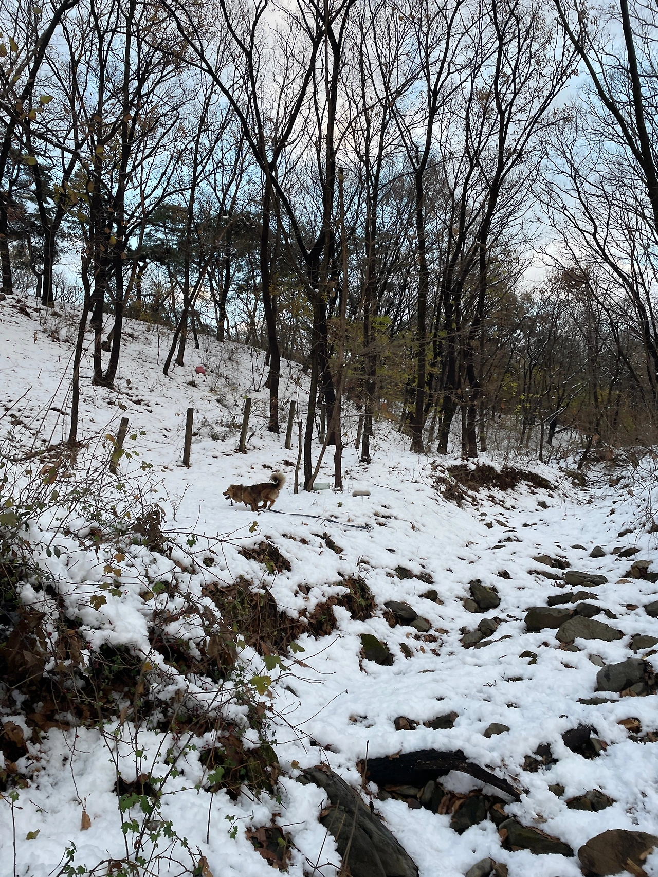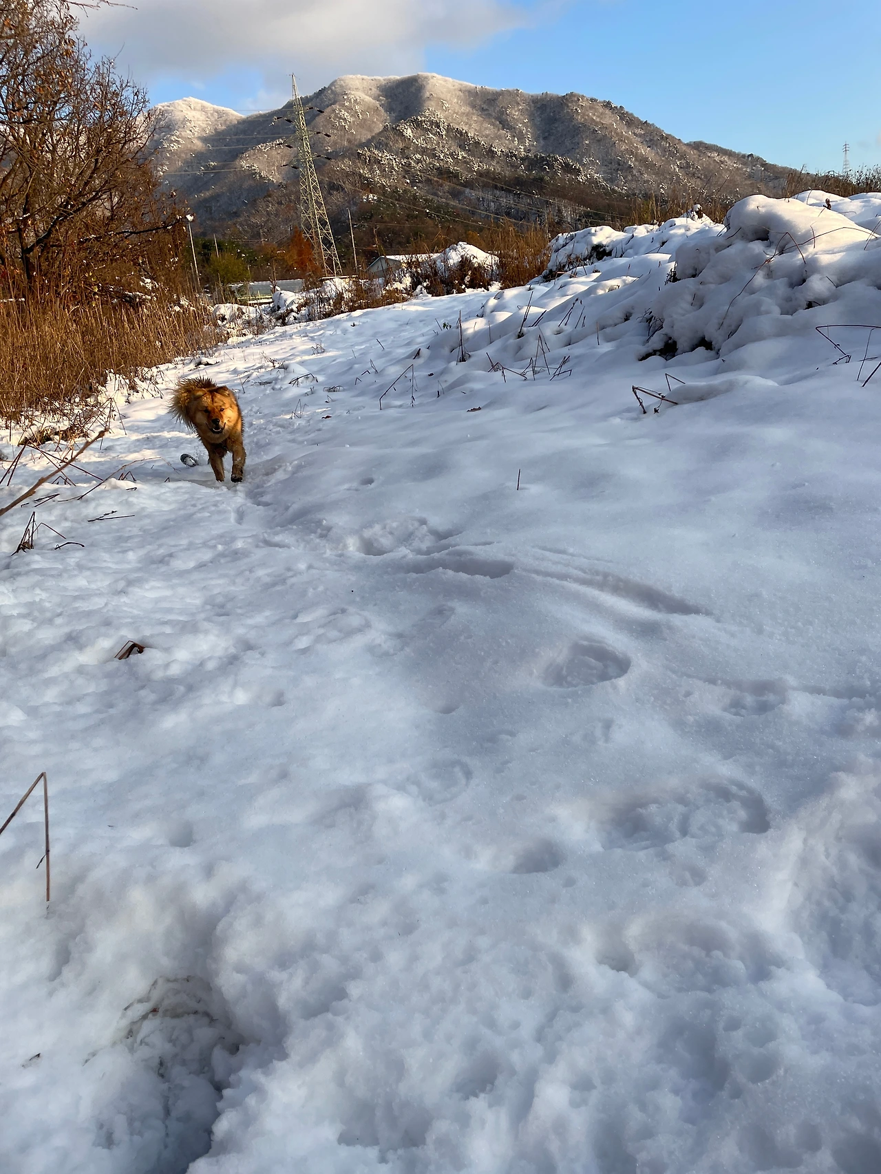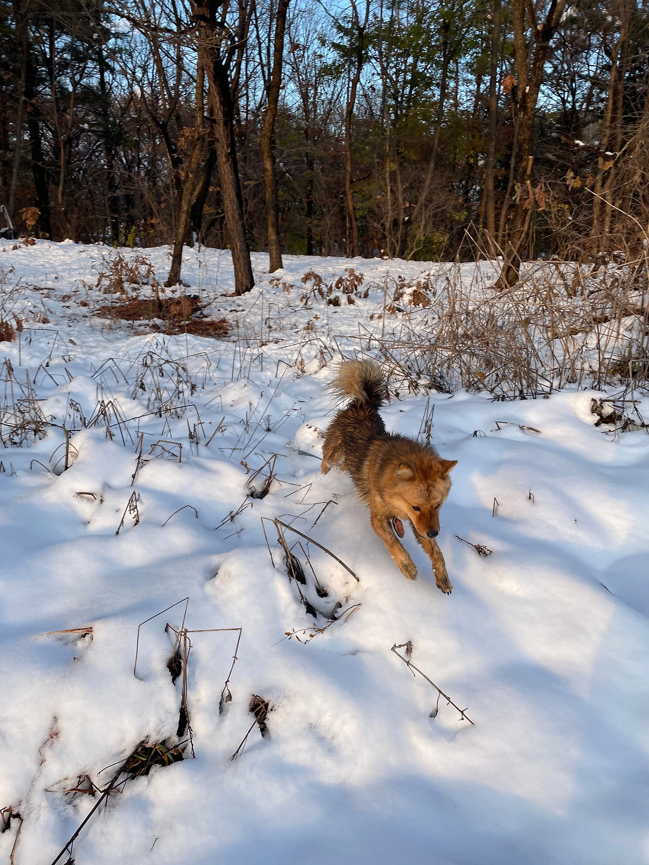 숯댕이와 산책을 나섰다. 언니의 털부츠를 신고 뛰니까 둔해져서 쿵쾅거리며 달렸다. 발이 푹푹 빠졌다. 숯댕이는 발이 시릴 텐데 자유로 인한 기쁨이 더 큰 것 같았다.
