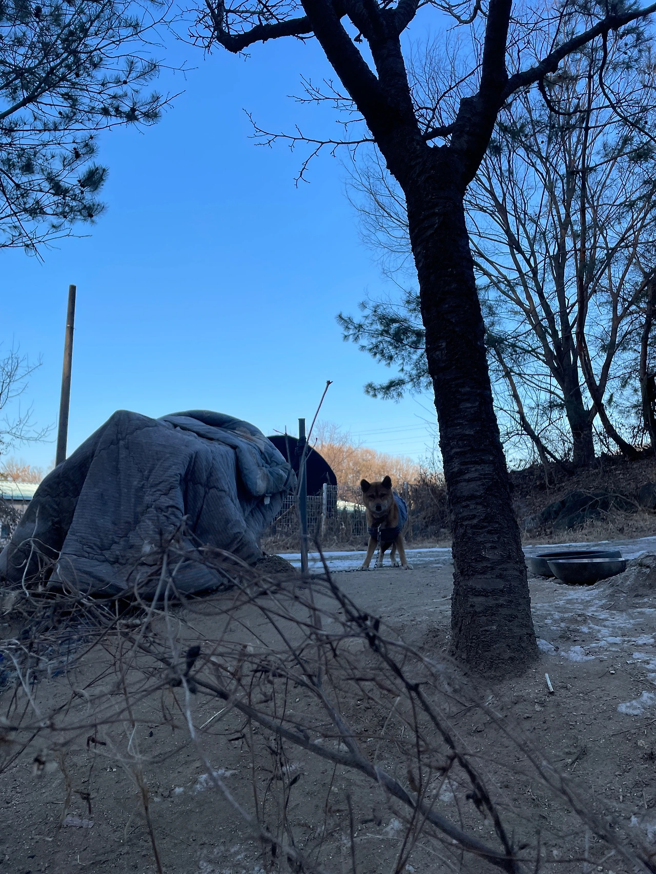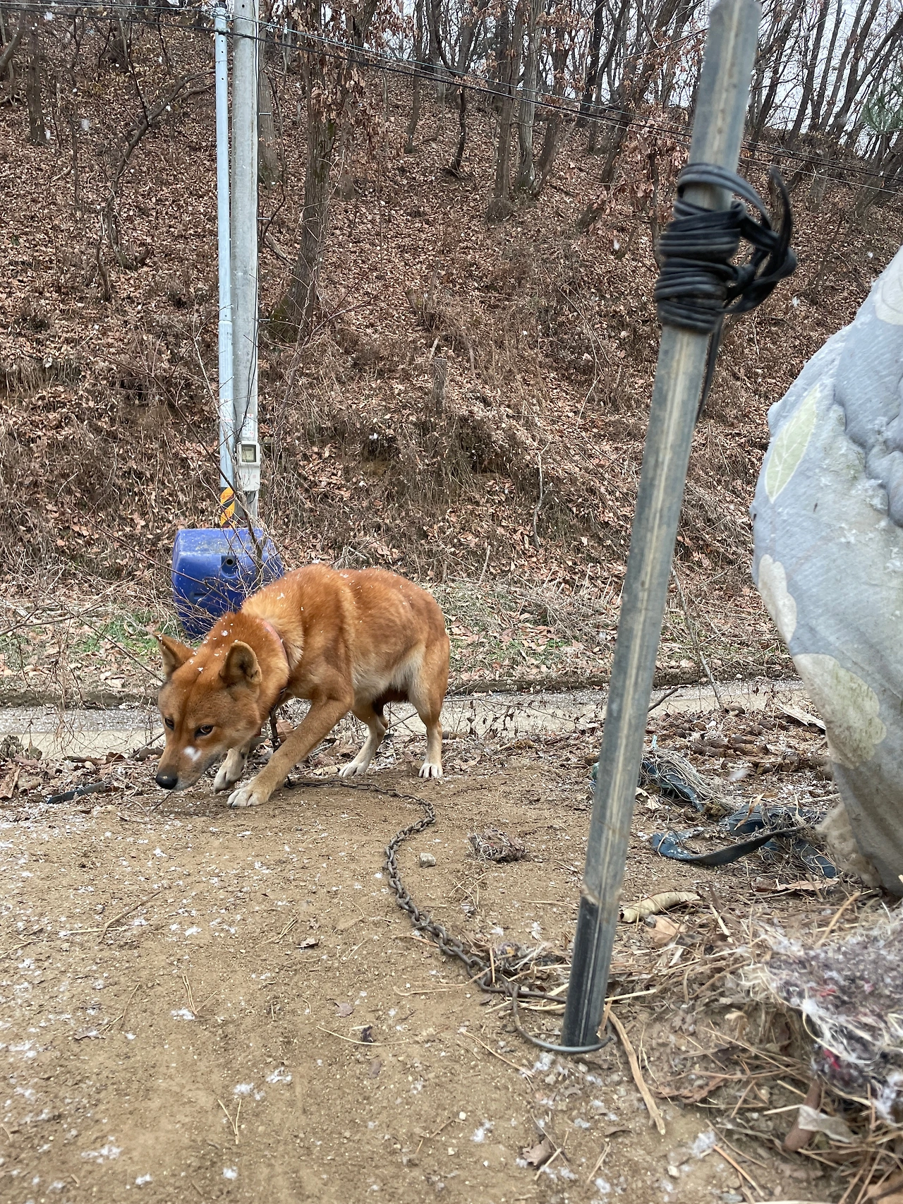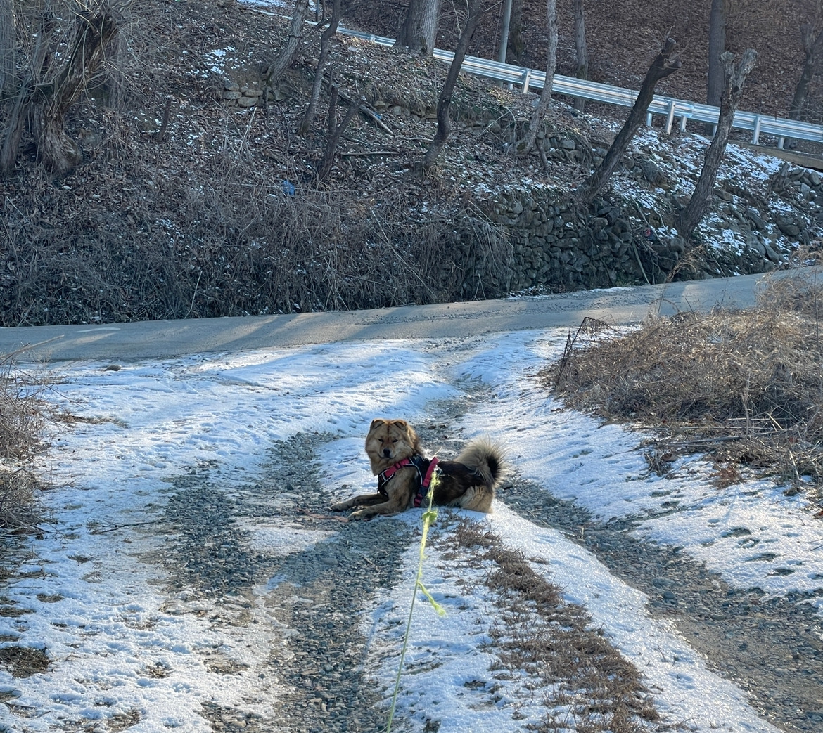 물 스팟 바로 앞엔 또 마당개가 있다. 1M 줄 바로 뒤에는 똥이 잔뜩 있었다. 추위에 덜덜 떨고 있어 민원을 넣었었다. 동물복지팀 공무원은 나의 민원에 대한 답변으로, 그 개가 가족으로부터 사랑을 받고 있다고 했다. 좌절한 나는 그 후로 그쪽을 가지 않았다.