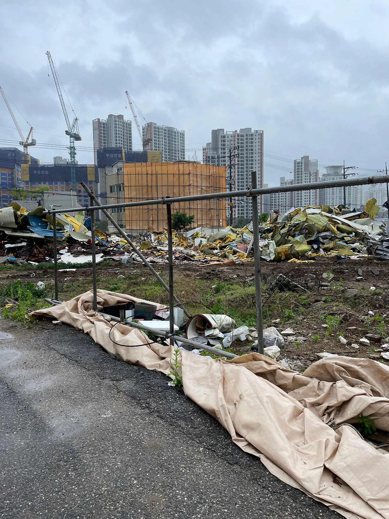 걸어가며 보이는 풍경에 속이 부글거렸다. 전 세계 사람들이 걱정하고 있는 전쟁 지역의 모습과 뭐가 다른지 모르겠다. 전쟁 없는 세상, 평화. 그런 말에 비인간의 평화는 없다. 탱크 앞에 국화꽃을 놓는 것은 상상할 수 있지만, 분양 홍보지 앞에 애도하는 인간은 없을 것이다.