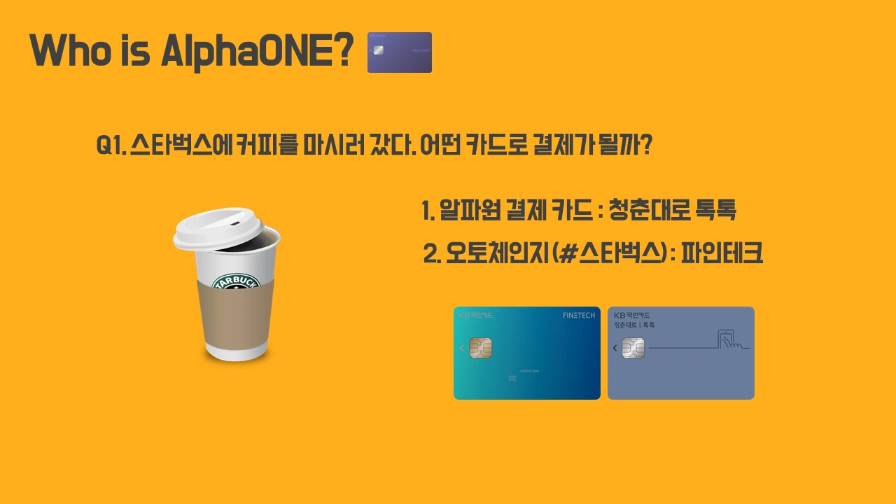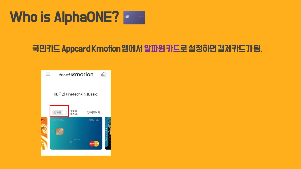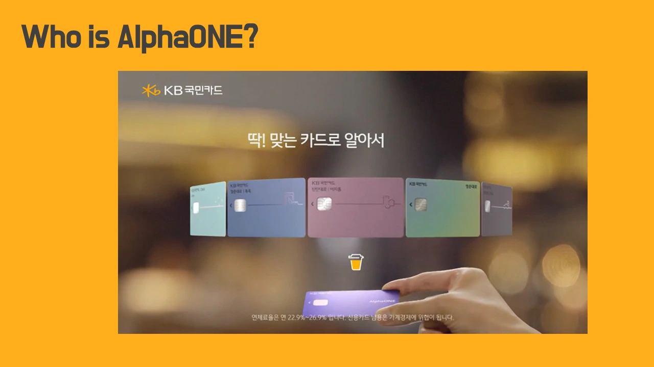 KB금융그룹에서 만들고 이제훈이 출연한 KB 알파원카드 광고를 보자. 정확히는 아니더라도 어떤 카드인지 대충 감은 올 것이다.