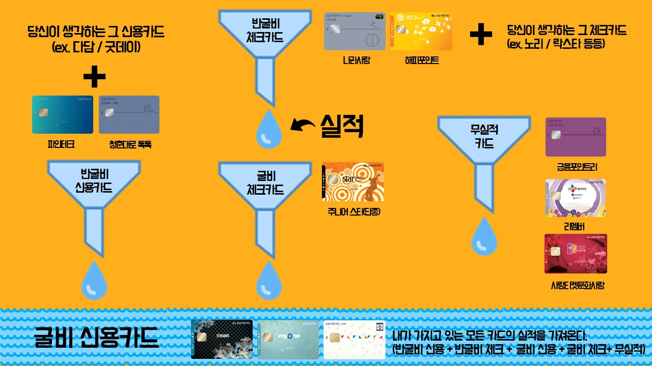반굴비든 굴비든 신용카드는 체크카드의 실적을 채울 수 없다. 반면 체크카드는 상관없이 굴비 신용카드의 실적을 채울 수 있다.