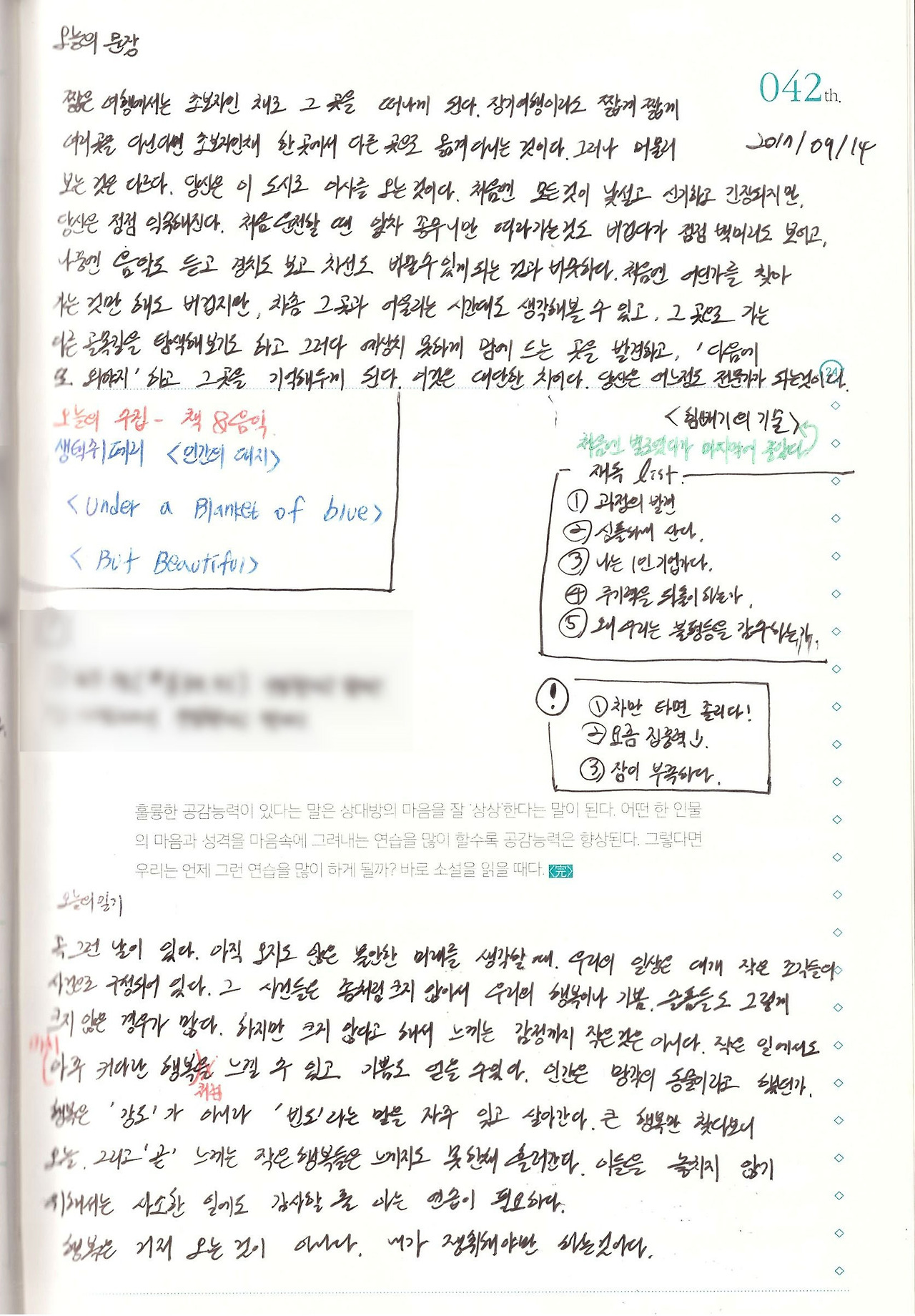 2017년 7월 31일부터 11월 26일까지 약 네 달간 책 <두근두근>에 일기를 쓰면서 '나'를 기록했다. 종종 빠진 날도 있지만, 네 달 동안 꾸준하게 일기를 썼다. 지금은 못할 짓이다. 일기를 읽어보니 이런 생각이 들었다.