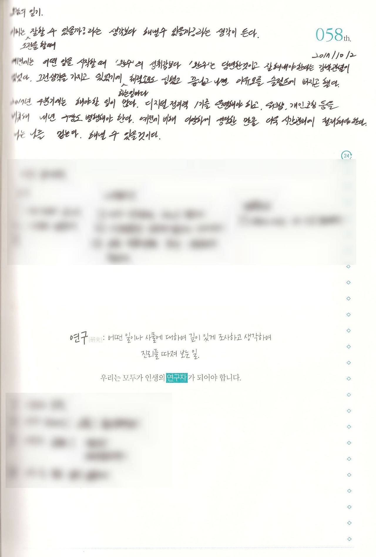 이제는 도전을 할 때 잘할 수 있을까?라는 생각보다 해낼 수 있을까?라는 생각이 든다. 예전에는 어떤 일을 시작할 때 '완수'의 성취감보다 '완수'는 당연한 것이고, 잘 해내야 한다는 강박관념이 있었다. 그런 생각을 가지고 있었기에 하는 일마다 체력 소모도 심했고, 끝나고 나면 이유모를 슬럼프에 빠지곤 했다. 2017년 4분기에는 해야 할 일이 많다. 디지털 정리력 1기를 운영해야 하고, 워크숍, 개인 코칭 등을 비롯해 내년 구상도 병행해야 한다. 예전에 비해 다양하게 성장한 만큼 더욱 시간관리에 철저해야 한다. 나는 나를 믿는다. 해낼 수 있을 것이다.