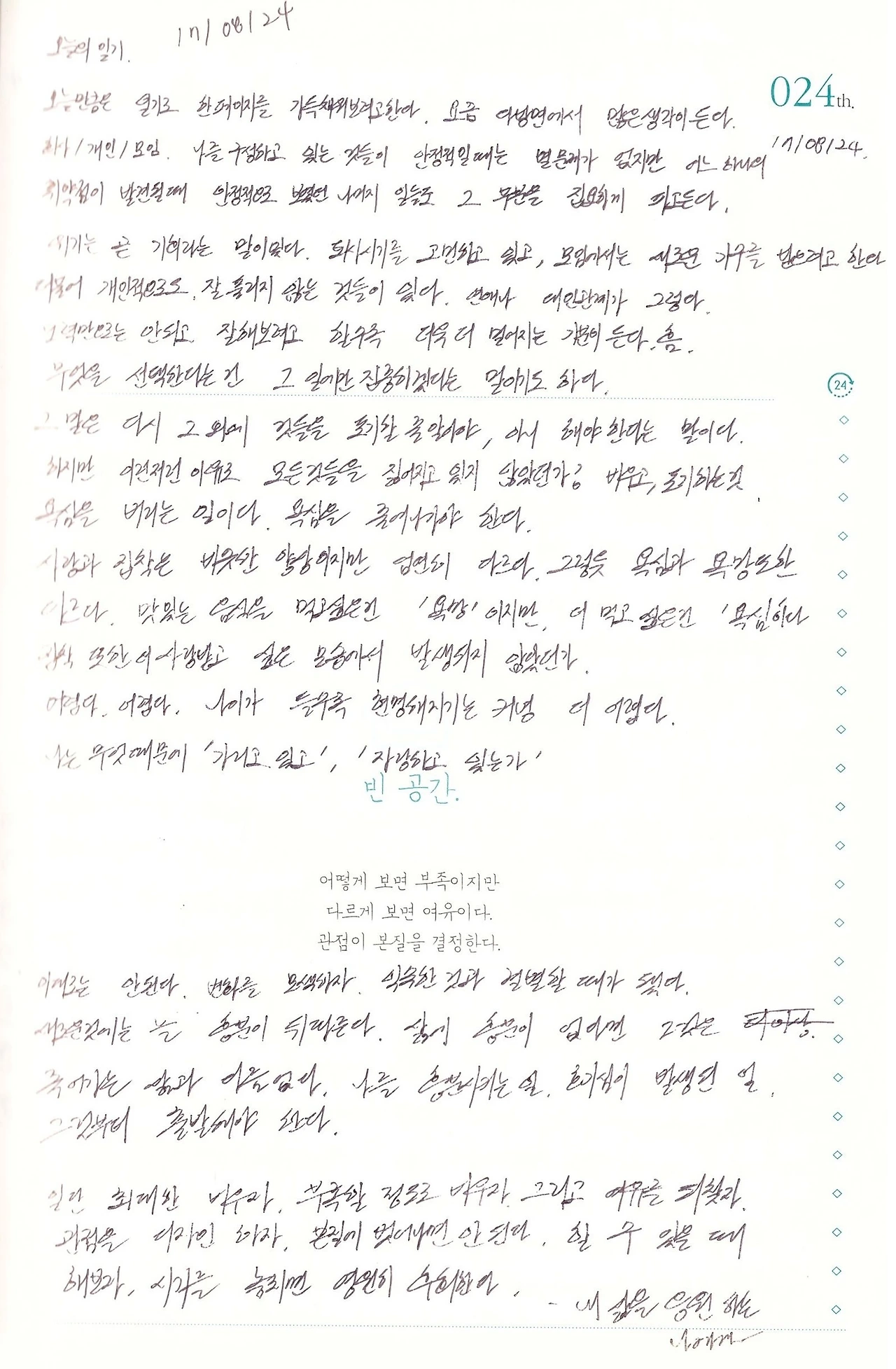 적지 않았더라면 여전히 이루지 못한 것에 집착한 나머지, 앞만 보고 있을 내가 뒤를 돌아보며 위로를 받는다. 그리고 다시 앞으로 나아갈 내 등을 힘껏 밀어준다.