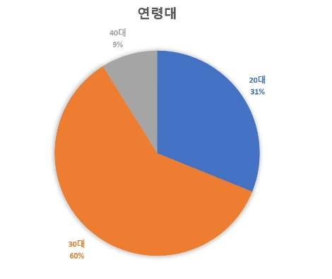설문에 참여한 45명 중에 성별은 여성(26명)이 남성(19명) 보다 많았고, 연령대는 30대가 60%(27명)로 절반 이상을 차지했고, 20대(14명)가 뒤따랐다. 40대는 4명이 설문에 응답해주었다.