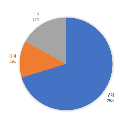 도서관에서 주로 책을 대여해서 읽는 사람들은 독서량은 많았지만 책 구입 비용은 적었고, 전자책 구독 서비스를 주로 이용하는 사람들 중 독서량이 적은 사람들은 전자책으로만 읽으면서 책 구입 비용이 거의 없었고, 독서량이 많은 사람들은 종이책까지 확장해서 읽느라 구입비용 또한 상승했다.