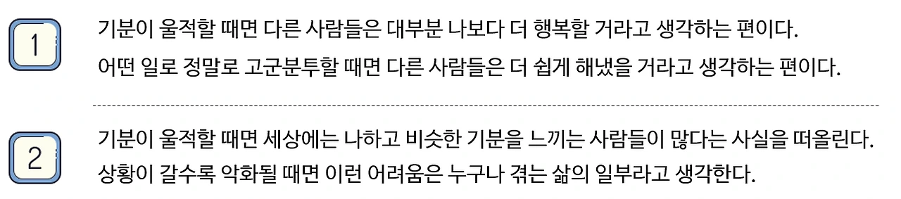 지금 글을 읽고 있는 당신은 기분이 울적할 때 1번과 2번 중에 어떤 쪽이 더 가깝다고 생각하는가? <자기 분석 보고서> 글을 쓸 때 나는 1번에 가까웠다. 고속도로 분기점에서 어떤 방향으로 가야 할지 갈피 조차 잡지 못하고 있는데 몇몇 사람들은 이미 목적지에 도착했다는 소식을 전해왔다.