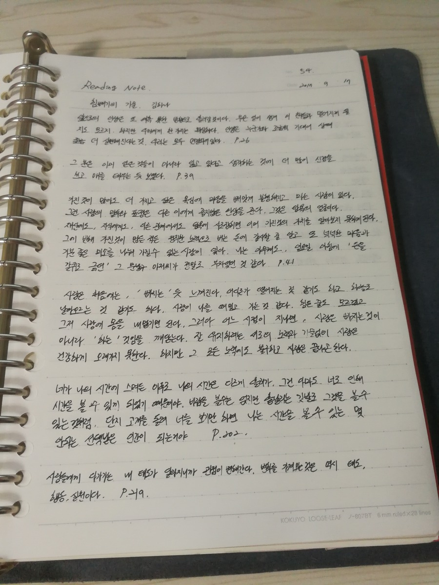 지금은 예전처럼 아날로그 방식으로 성의를 다해 독서노트를 관리하지 않는다. 문장을 적는 감각은 좋지만 매번 정리하기엔 오랜 시간이 걸렸다. 다만 감각을 포기한 건 아니다. 매일 책을 읽으면서 하루 2 문장 정도는 필사를 통해 노트패드에 기록한다. (삘 받을 때는 조금 더!)