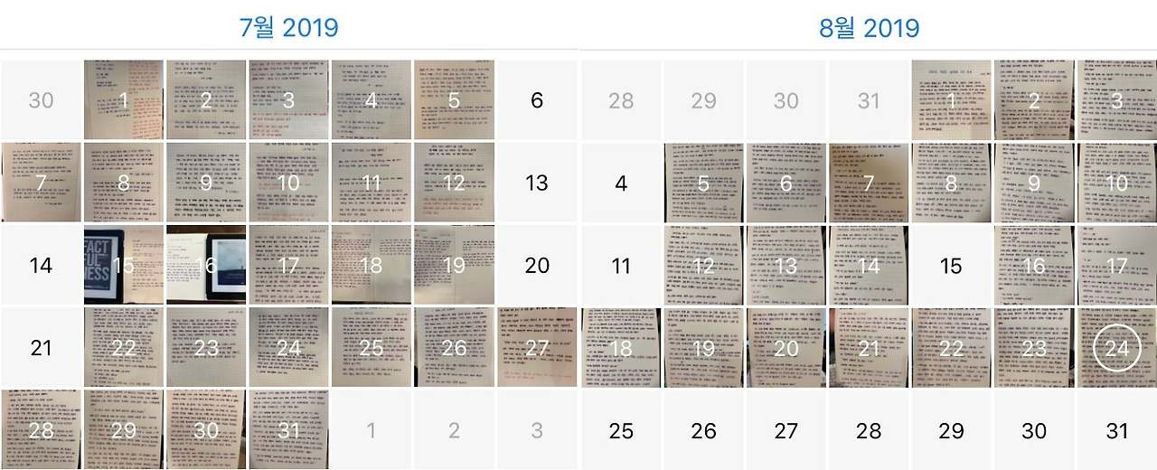 최근 두 달간 몇 차례를 제외하고는 평일에 하루도 빠뜨리지 않고 책 《쇼코의 미소》를 필사했다. 어느덧 소설의 전체 페이지인 64페이지 중 30페이지를 넘어섰다. 작년에 이어 두 번째 필사다. 이번에 책 《생각이 돈이 되는 순간》을 읽기 전에도 최은영 소설가가 글을 쓸 때 주로 어떤 패턴을 쓰는지 대략적으로 알고 있지만, 이번에 그래프로 직접 그려보니 패턴이 좀 더 명확해졌다. 이제는 그녀의 문장과 패턴을 열심히 따라갈 일만 남았다.