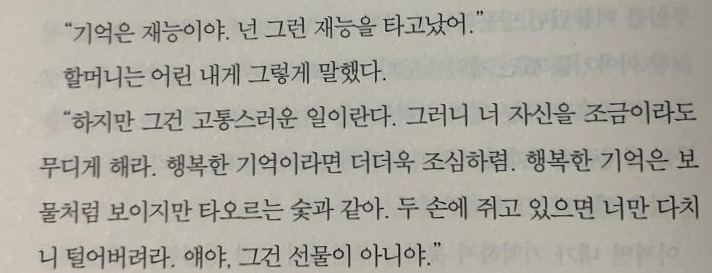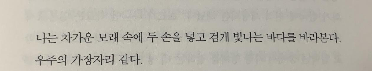 이 책의 첫 문장을 읽으며 누군가는 얼마 전 여름휴가 때 다녀온 경포대 해수욕장을 떠올렸지만, 또 다른 누군가는 살면서 가장 외로웠던 순간을 떠올린다. 유튜브 시대에 여전히 글이 죽지 않고 살아남을 수 있었던 건, 읽으면서 저마다 다른 이미지를 그려낼 수 있기 때문이다. 그 이미지는 과거에 본인이 경험한 삶의 형태와 긴밀히 연결되어 있다. 소설 속에서 등장하는 '엄마'라는 단어에 어떤 사람은 자식들을 먹여 살리느라 항상 바빴던 엄마를 떠올리는 사람도 있지만, 또 다른 사람은 자식에게 의존적인 엄마의 모습을 떠올리기도 한다. 그래서 영상은 글보다 훨씬 많은 정보를 제공해주지만, 때론 과잉보다 여백이 우리에게 더 많은 것을 안겨다 준다.