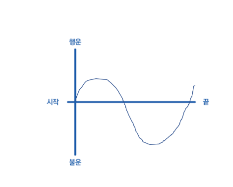 책 《쇼코의 미소》를 신데렐라 이야기처럼 그래프로 그려본다면, 「쇼코의 미소」 「씬짜오 씬짜오」, 「한지와 영주」는 비슷한 패턴을 가질 것이다. 소설의 도입부에서는 행운 쪽으로 높았다가, 중반쯤에는 불행으로 치닫고, 끝에 다다라서는 x축의 언저리에서 행운 또는 불행으로 끝나는 패턴을 가진다. 이를 통해 과거에 좋아했던 작품들을 떠올려보면 나는 감정의 극과 극을 수시로 왔다 갔다 하는 이야기보다 몇 차례만 교차되는 이야기를 좋아했다.