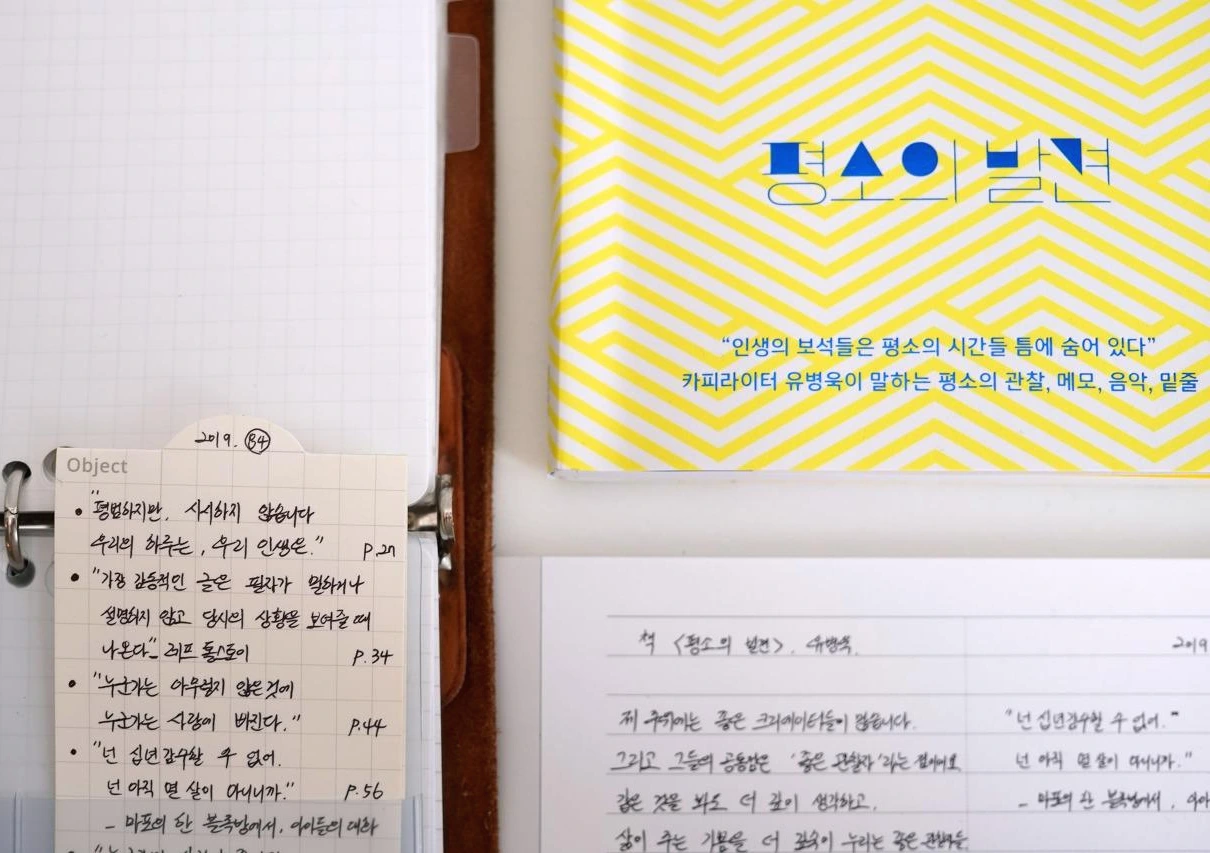 책 <평소의 발견>을 읽으면서 군데군데 적혀있는 카피와 같은 좋은 문장을 보면서 감탄하기 바빴습니다. 이 문장을 보며 누구나 공감하기는 쉽지만, 일상에서 저 문장을 누구나 발견하지 않기 때문에 더욱 그랬습니다. 어쩌면 그의 강연을 들으면서 '이 사람과 일하면 엄청 피곤하겠구나'라는 생각이 들었던 것도 그가 남들보다 일상 가까이에 붙어있어서 남들은 쉽게 놓치는 디테일까지 챙기기 때문이었겠죠. 일상을 사랑하지 않으면 나올 수 없는 관찰력이죠.