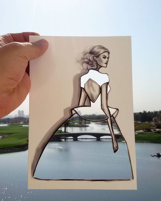 도시 속에서 밤에도 드레스를 입을 수 있다. 애니멀 종이 자르기에 이어 드레스 종이자르기 작품을 소개한다. 작가는 샤메크 블루위(Shamekh bluwi)로 종이 잘라내기(컷아웃) 일러스트레이터이다. 현재 요르단, 암만의 패션 일러스트레이터이며 그는 그의 작품 속에서 패션의 세계를 찬양한다. 온라인 인터뷰를 통해 그가 건축을 전공한 것이 예술과 인간의 육체에서 오는 아름다움으로서 테크니컬 관점에서 같이 보는데 도움이 되었다고 한다.