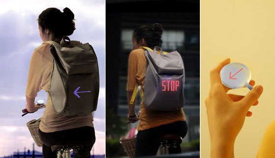쉽게 볼 수 없는 다양한 모양의 백팩. 백팩 하나만으로도 아이디어가 차고 넘친다. 이중에 자전거 방향등 백팩 가방 특히 탐난다.