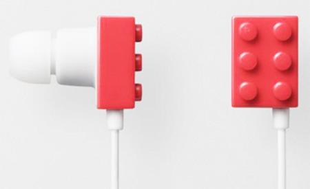 Cool headphones feature red 2×3 brick on the outside of each bud. [link]