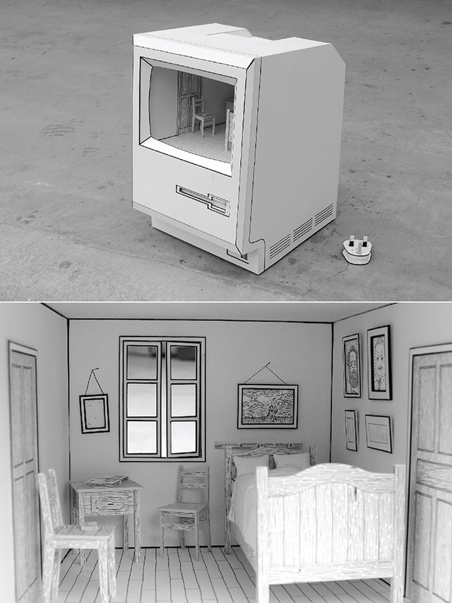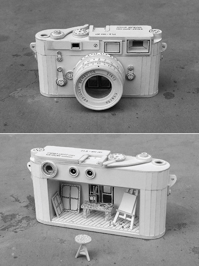 런던에 사는 홍콩 일러스트레이터 겸 제품 디자이너 케빈(Kevin LCK)은 유명한 전자제품을 다시 카드보드를 이용해 재구성하였다. 게다가 이러한 전자제품 안에는 또 다른 미니어쳐 세상이 포함되어 있다.