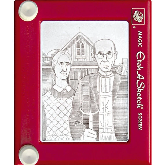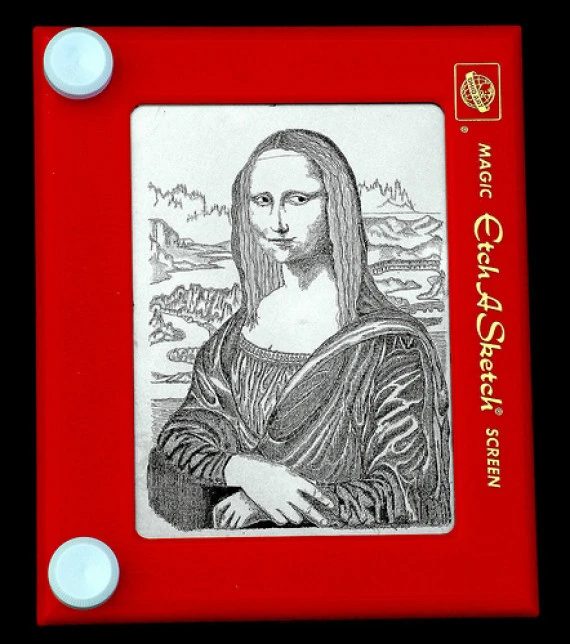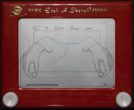 프랑스 발명가 안드레(André Cassagnes)가 만든 오래전 획기적인 그림 그리는 장난감 에취어스케치(Etch-A-Sketch) 단순하게 손으로 좌우 하단에 있는 둥근 스위치를 움직여 그림을 그릴 수 있다.