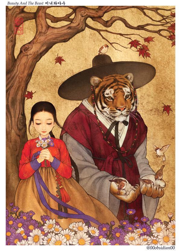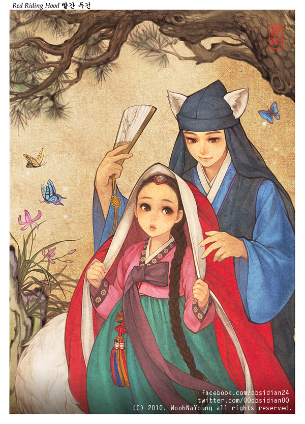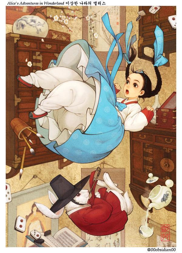 리니지로 유명한 NC소프트에서 게임 디자인을 하던 작가가 프리랜서로 나서며 원화 그림을 그리게 되었다. 작가의 이름은 우나영으로 인터넷에서는 흑요석으로 불리운다. 한국적인 그림풍과 서양의 작품을 콜라보해서 동양적인 아름다운 작품, 특히나 한복의 아름다움을 예쁘게 표현한다. 아래 작품들은 흑요석님의 "한복과 서양동화의 만남" 시리즈의 작품들로 특히 한복을 입은 엘리스는 큰 인기를 얻고 있다.