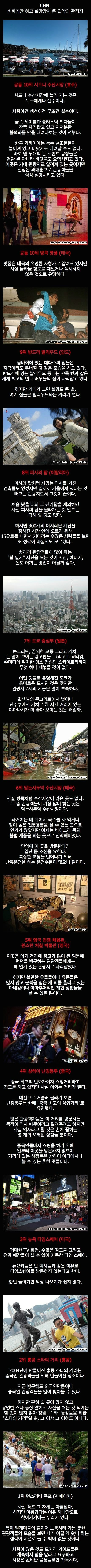CNN에서 뽑은 가장 최악의 여행지들이다. 우리나라 여행지가 안들어간 것은 그나마 다행이다.