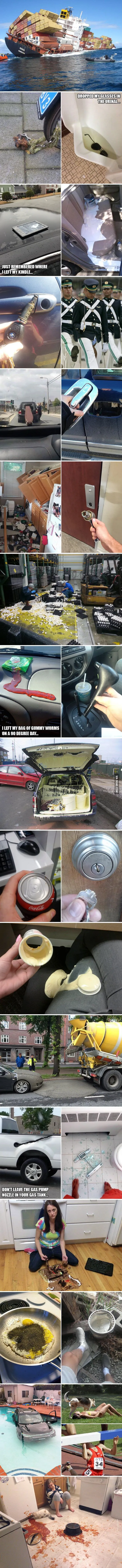 순간의 실수, 엄청난 실수 사진들 모음이다. 실수라기보다 사건이라 보이는 사진도 보인다.