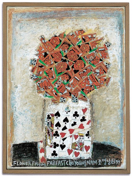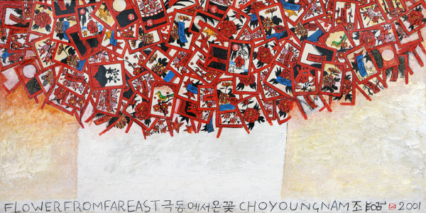 “비, 광, 흑싸리, 청단, 홍단 등 화투 이미지에 우리 사회의 희망을 패러디해 보고 싶었던 거죠. 많은 사람들이 일상적으로 화투를 좋아한다고 생각을 했고요. 일본의 놀이 기구인데 밤을 새워가며 즐기는 한국인의 이중성이 매우 흥미롭기도 했어요.”