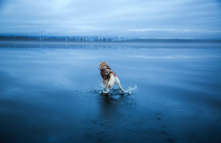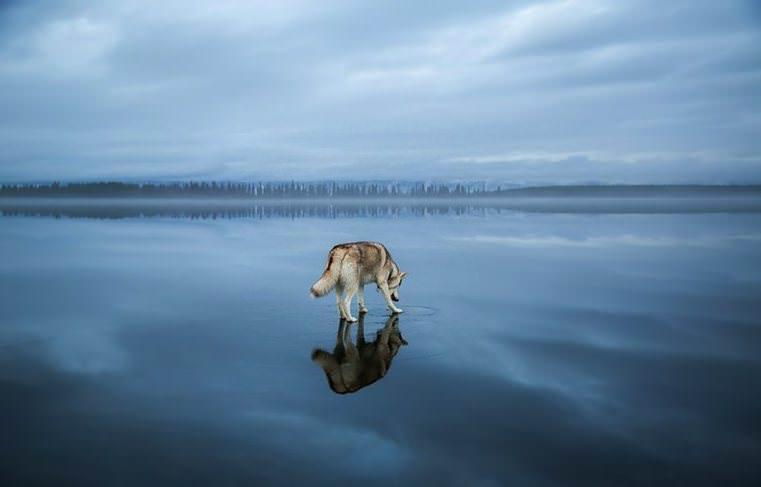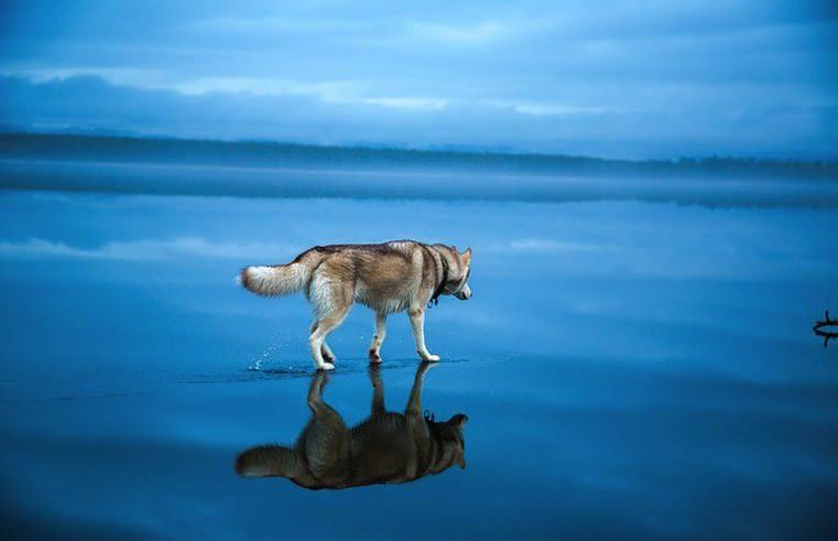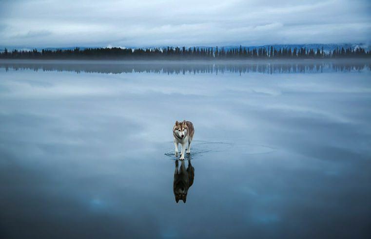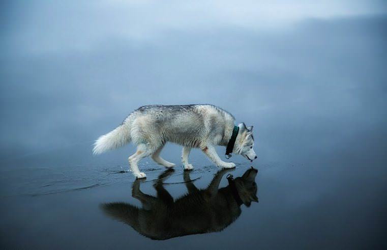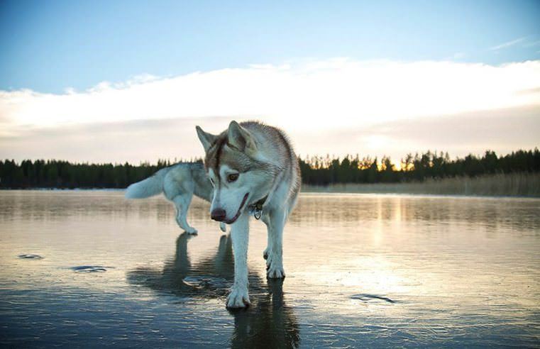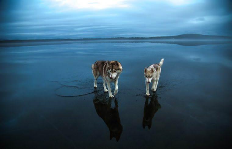 Huskies looking magical on mirror-like frozen lakes in Russia Fox Grom has won over the world with his majestic photos of Siberian Huskies. This pet owner recently took his two dogs to an enormous frozen lake in Russi