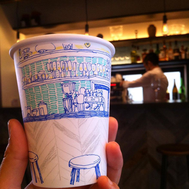 일본 동경의 아티스트인 스즈키(Mariya Suzuki)는 일본의 수도, 도쿄에서의 바쁜 삶을 보여주는 독특한 방법을 발견했다. 종이컵에 그녀의 앞에 있는 장면들을 낙서하듯 담아내는 것이다. 그녀는 그것을 "Drawing to Go"라고 부르며 이렇게 말했다.