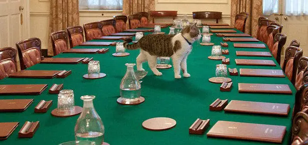 데이비드 캐머런 영국 총리가 6년 동안 머물렀던 총리 관저(다우닝가 10번지)를 떠났다. 그러나 캐머런과 함께 했던 ‘고양이 보좌관’ 래리(Larry)는 관저에 남아 출몰하는 쥐 잡는 일을 계속하기로 하였다.고양이 래리는 2011년 2월 4살에 총리 관저로 들어왔다. 래리의 공식 직책은 총리 관저 수렵보좌관(Chief Mouser to the Cabinet Office)이다.