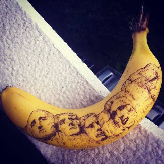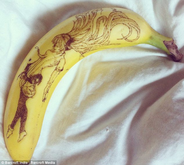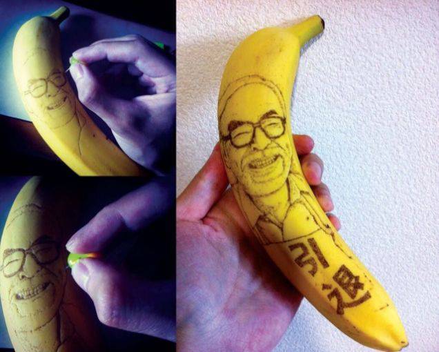 아티스트 엔드 카페(End Cape)로 그냥 시간을 보내는 취미 활동이었는데 작품이 놀라워서 유명해졌다고 한다. 그는 바늘을 사용하여 바나나 표면에 그림을 그리며 주로 유명인들과 애니메이션의 캐릭터들을 그린다. 이 과정은 5시간 이상이 걸리는 고된 작업이지만 그 결과는 놀랍다.