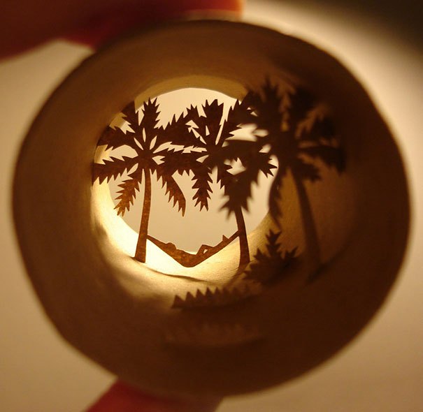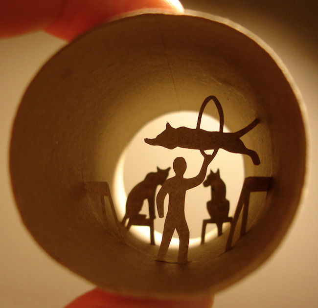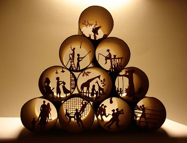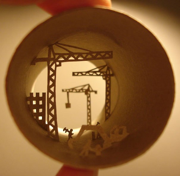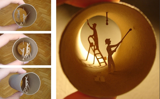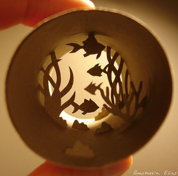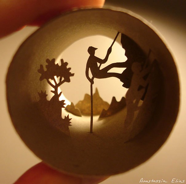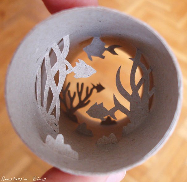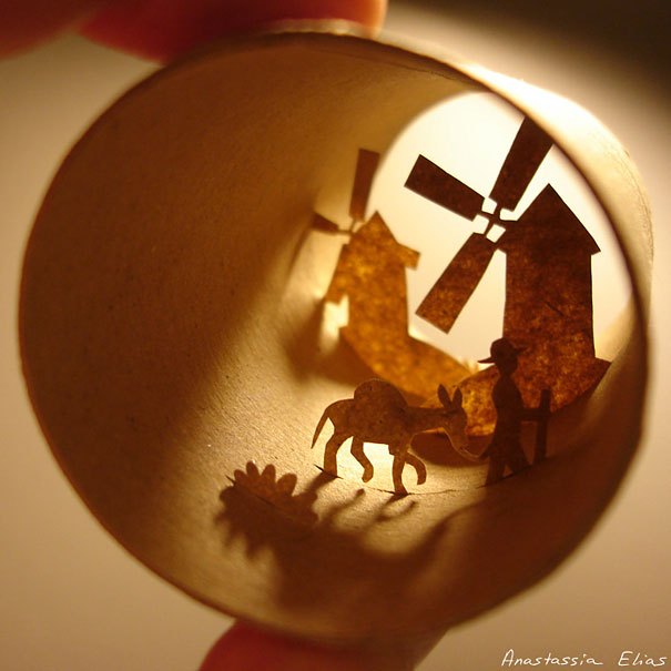 프랑스 파리에서 일러스트레이터와 화가로 활동하는 아티스트 아나스타샤 엘리아스(Anastassia Elias)는 화장실에서 사용하는 휴지의 휴지심을 이용한 작품을 만들어왔다. 그녀는 휴지심 속에 종이를 이용해 아주 작은 세상을 구현하였다. 어디서나 쉽게 구할 수 있는 재료로 휴지심 속의 작은 구멍을 통해 또 다른 세상을 바라보는 재미를 던져 준다.