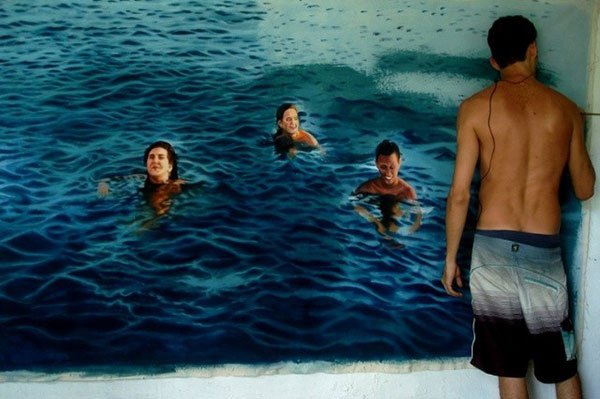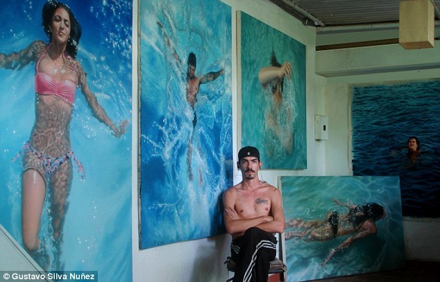 쿠스타보 실바 누네즈(Gustavo Silva Nunez)는 베네쥬엘라의 발렌시아에서 활동하는 아티스트로 물 속에서 수영하는 사람들을 실물과 똑같은 그림으로 환상처럼 그려낸다. 그는 빛과 반사를 이용하여 그림이 실물보다 입체적으로 보이도록 만들며 리얼리즘을 더하기 위해 그림 옆에 눈에 띄는 포즈를 잡고 있는 것도 그의 그림의 특징이다.