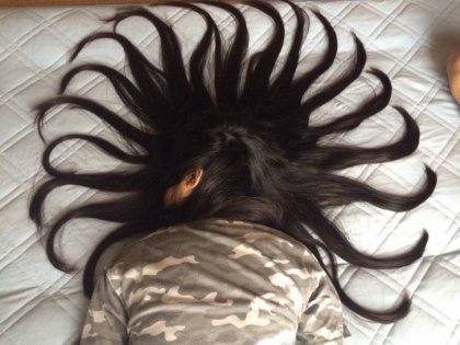 잠자고 있는 여동생이 일어나지 않자 머리를 가지고 장난치기 시작한 것이 예술이 되었다?