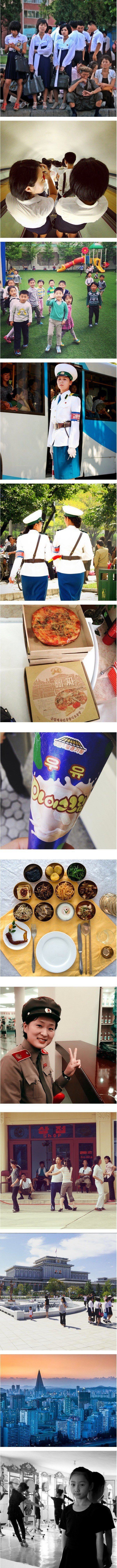 중국의 관광객이 찍은 북한의 모습이라고 한다. 낮인데도 차가 막히지 않는 한적한 시내 모습, 우리네 일상과 비슷한 사진들이 눈길을 끈다. 특히 아이들의 모습은 어디서나 똑같은 듯 하다. 카트 안에 앉아 있는 아이 모습이 정겹다.
