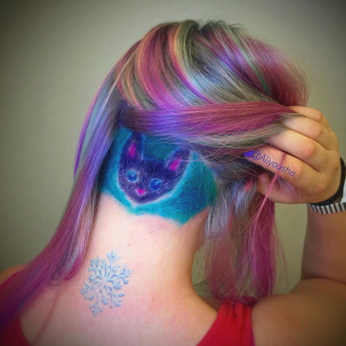 미국 피터즈버그의 헤어 아티스트인 알리야(Aliya Askarova)는 사람들의 머리를 이용해 일러스트를 표현하기 시작했다. 그녀는 고객 머리 뒤 쪽에 숨겨진 그림을 넣어 그녀 만의 헤어스타일을 완성했다. 그녀는 헤어 디자이너이면서 동시에 이미지 스튜디오 데니스 오시포브(Denis Osipov)의 크리에이티브 디렉터이기도 하다.