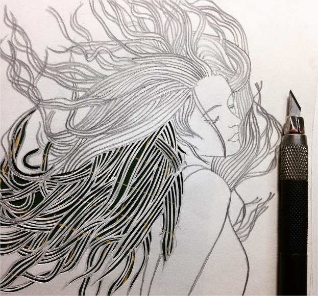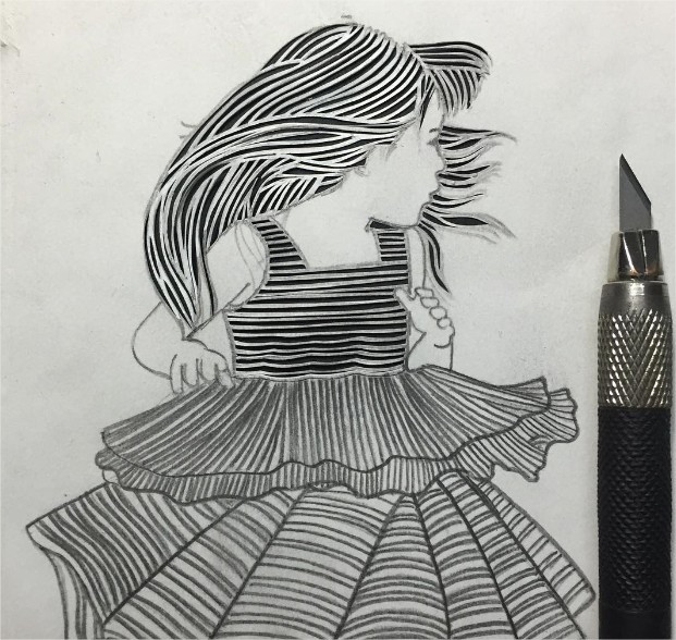 인도 출신의 작가 Parth Kotheka는 예술적인 종이 작품을 만들어내는 프로페셔널 아티스트이다. 스케치는 종이 한장에 그린후, 손 안의 칼을 이용해 단순한 종이 자르기 만으로 믿을 수 없게 섬세한 작품을 만들어낸다.