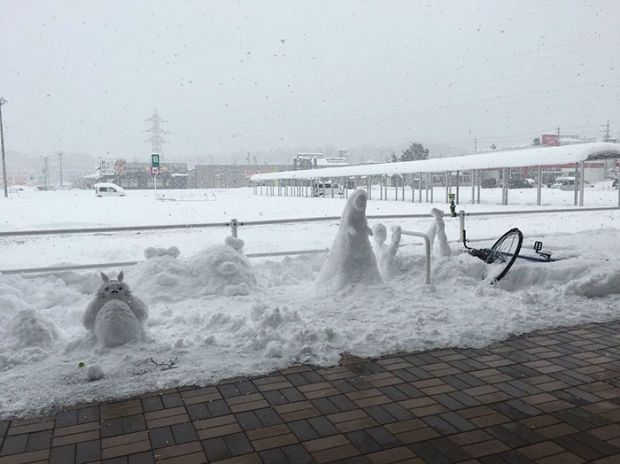 일본에 폭설이 내렸고 지브리 영화, 포켓몬, 스누피 등 캐릭터를 사랑하는 사람들이 눈사람을 만들었다. 어설프지만 우리가 잘아는 캐릭터들이 나오니 반갑다.