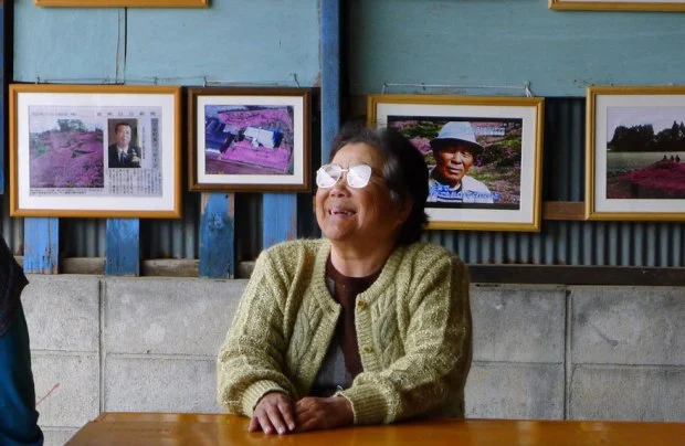 가족들과 친구들이 어떻게 하면 매일 그녀를 방문할 수 있을까? 생각한 남편은 핑크색 Shibazakura 꽃을 가득 정원에 심었다. 그리고 점점 더 밝은 색의 핑크색 꽃들을 집 둘레에 심기 시작했다.