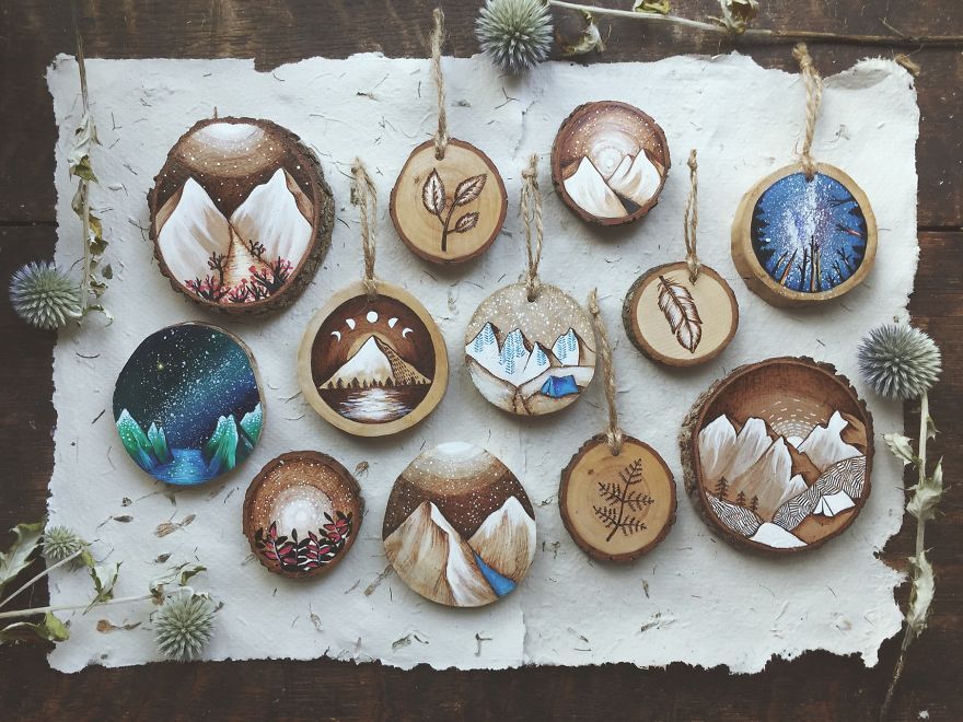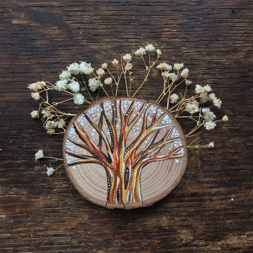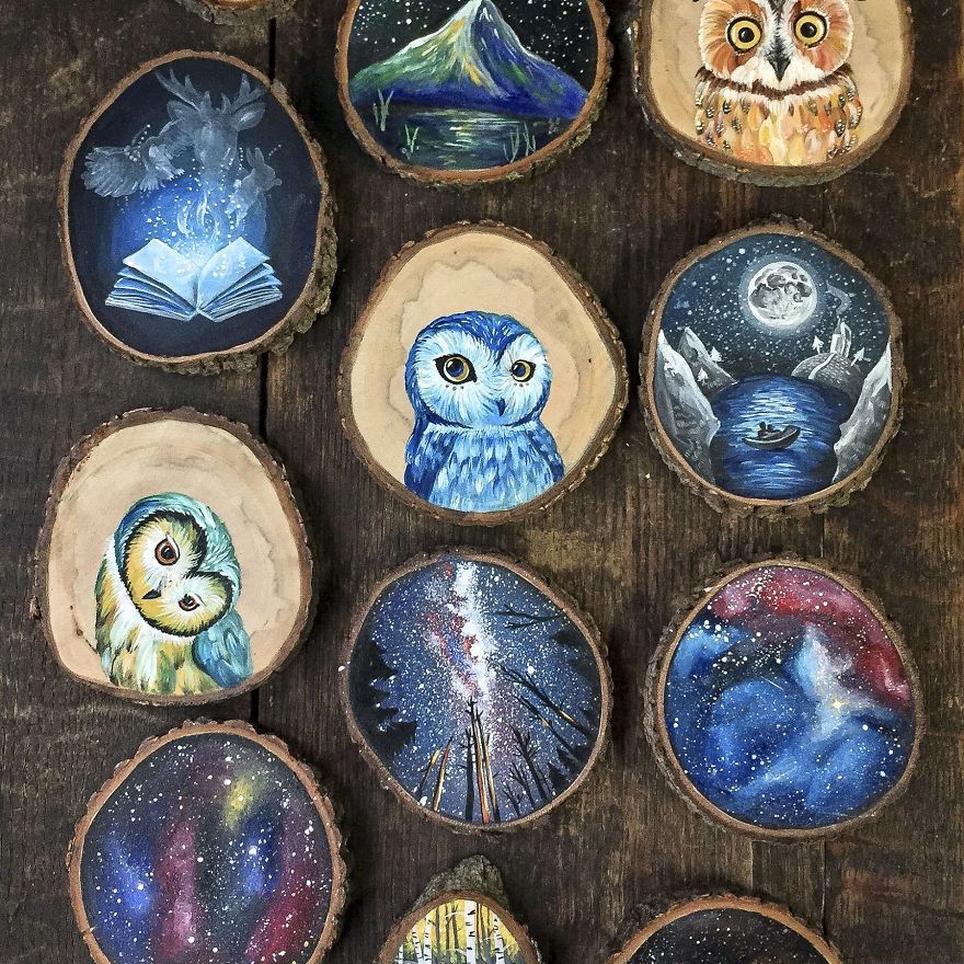 회사 생활에 지친 그녀가 다시 자연 속으로 돌아가기 위해 나무 위에 작품을 그리는 것을 배웠다. 이미 가지고 있는 탈렌트가 큰 것인지 작품들이 디테일하며 아름답다. 나도 이런 능력이 있다면 얼마든지 그만둘 수 있겠는데..
