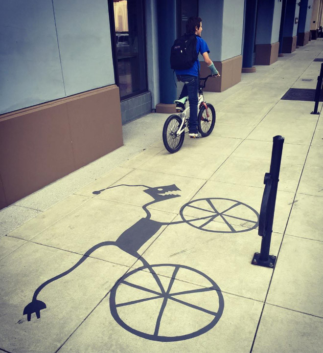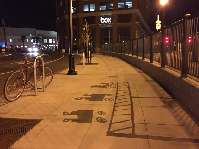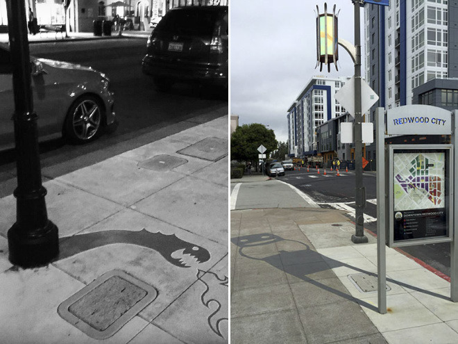 데이비드 벨런저(David Belanger)가 캘리포니아주 레드우드시에서 가짜 그림자를 통해 초현실적인 작품을 만들었다. 그는 지역의 창의성을 장려하기 위해 20여개의 가짜 그림자를 설치하도록 위임받았으며 많은 사람들을 당황하는데 성공하였다.