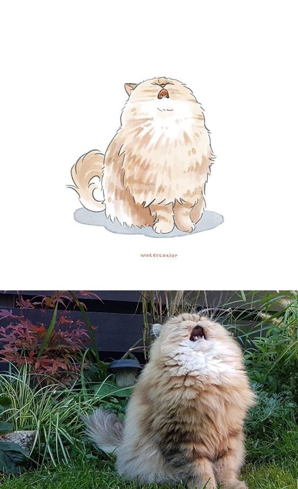 Artist Amelia Rizky, who goes by the name Watercatlor online, takes funny cat photos and memes, and then turns them into cute digital watercolor illustrations.