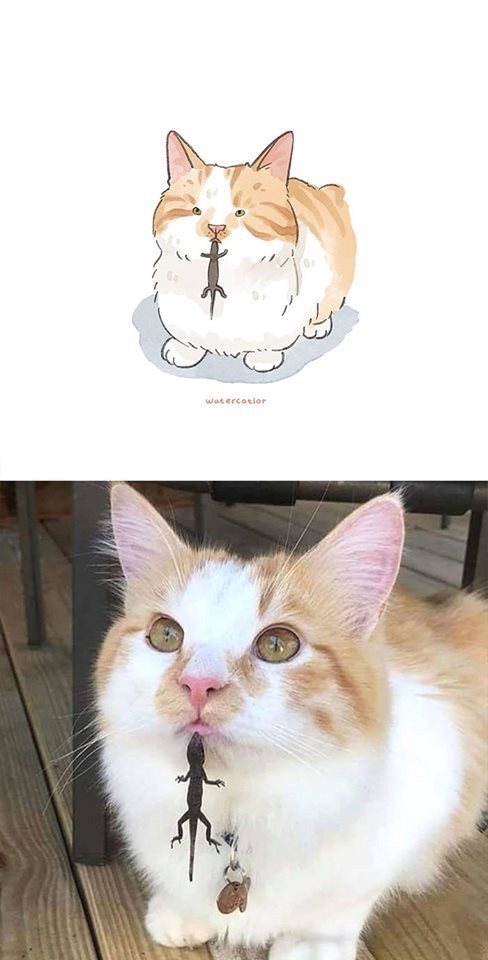 이미 인터넷으로 유명한 고양이 그림들을 아티스트 Amelia Rizky가 수채화를 이용해 작품을 만들어 인스타그램에 공개하고 있다. 고양이를 좋아하는 집사들이라면 그림을 보면서 행복해지리라 생각한다.