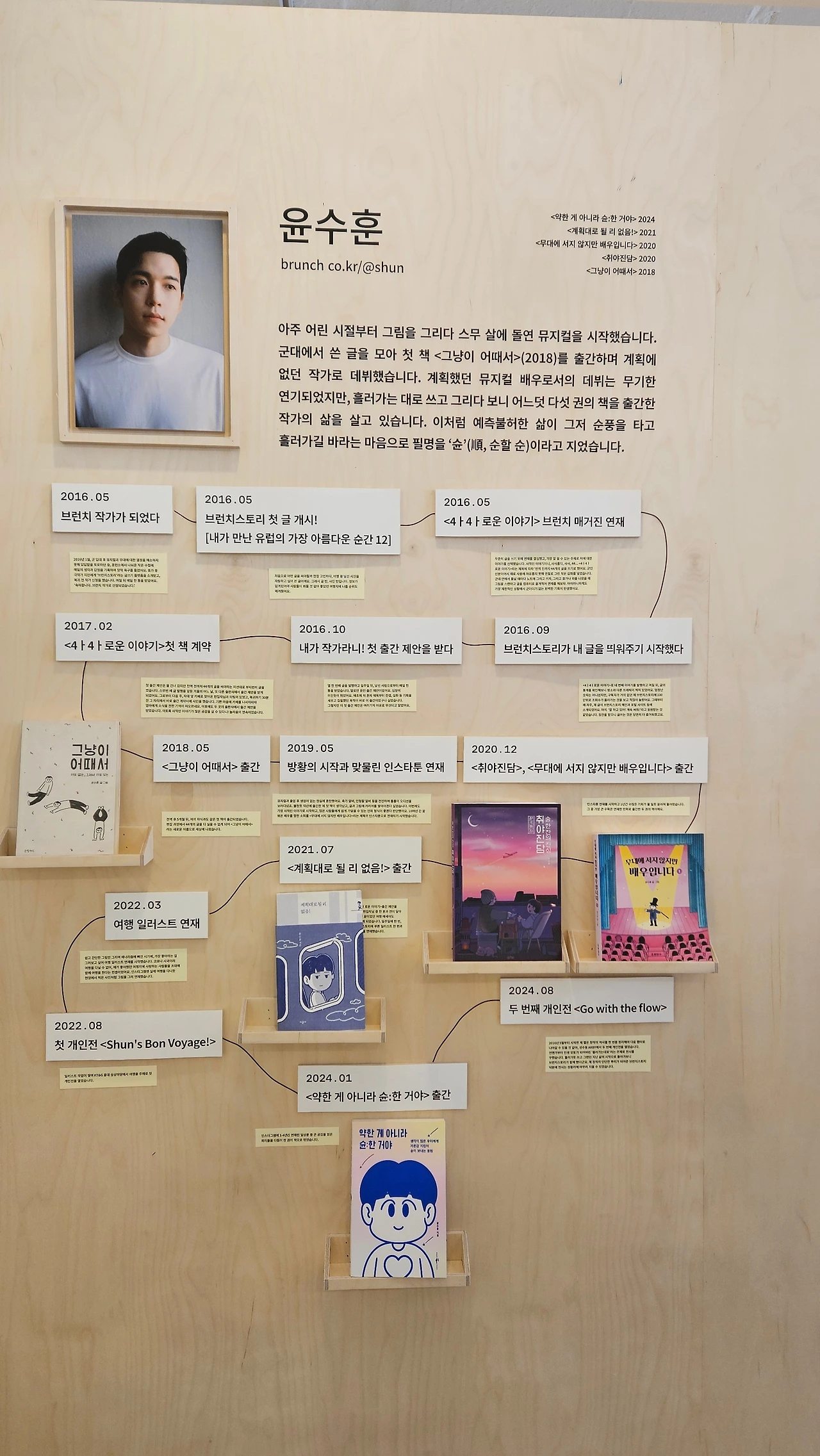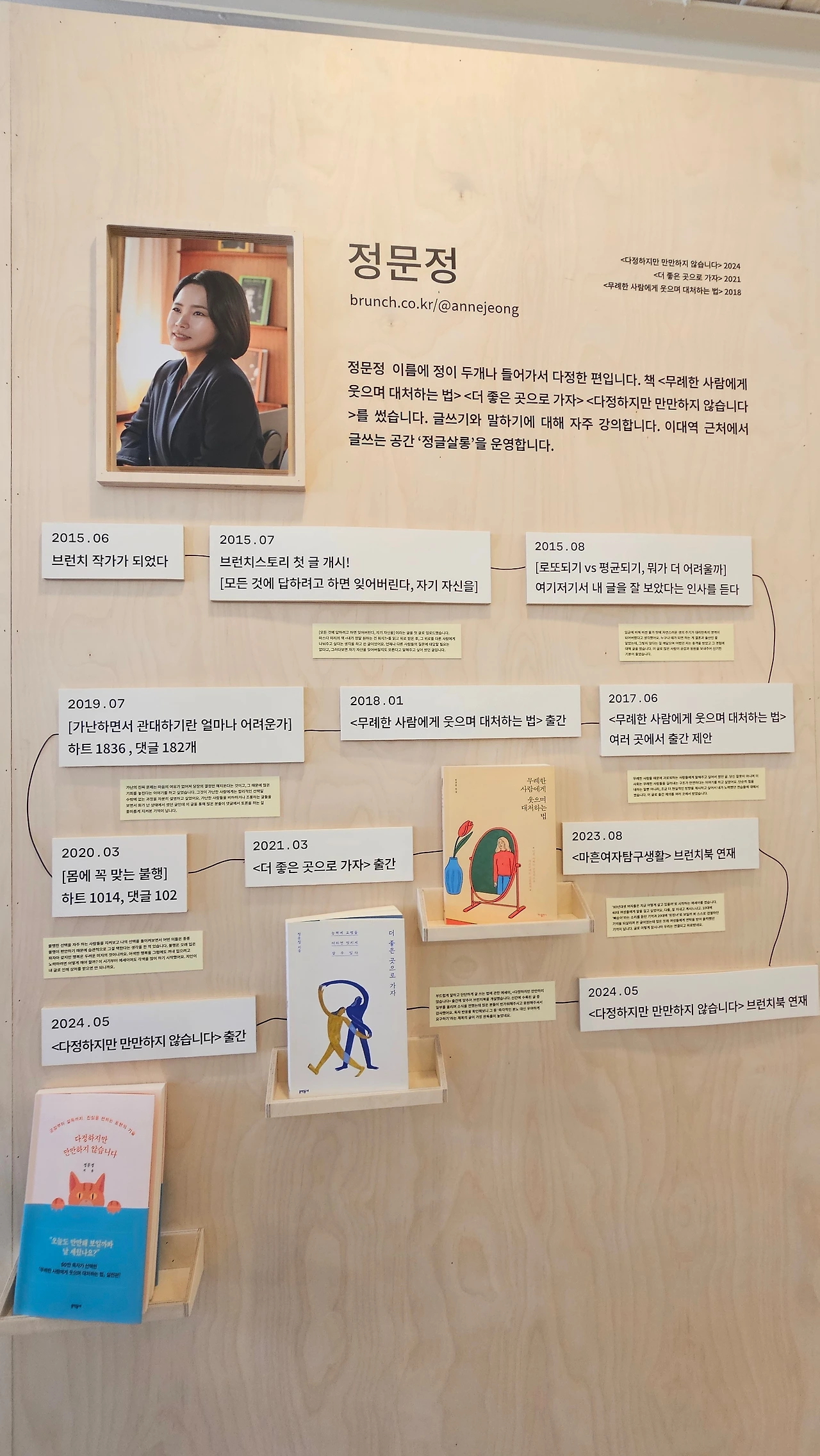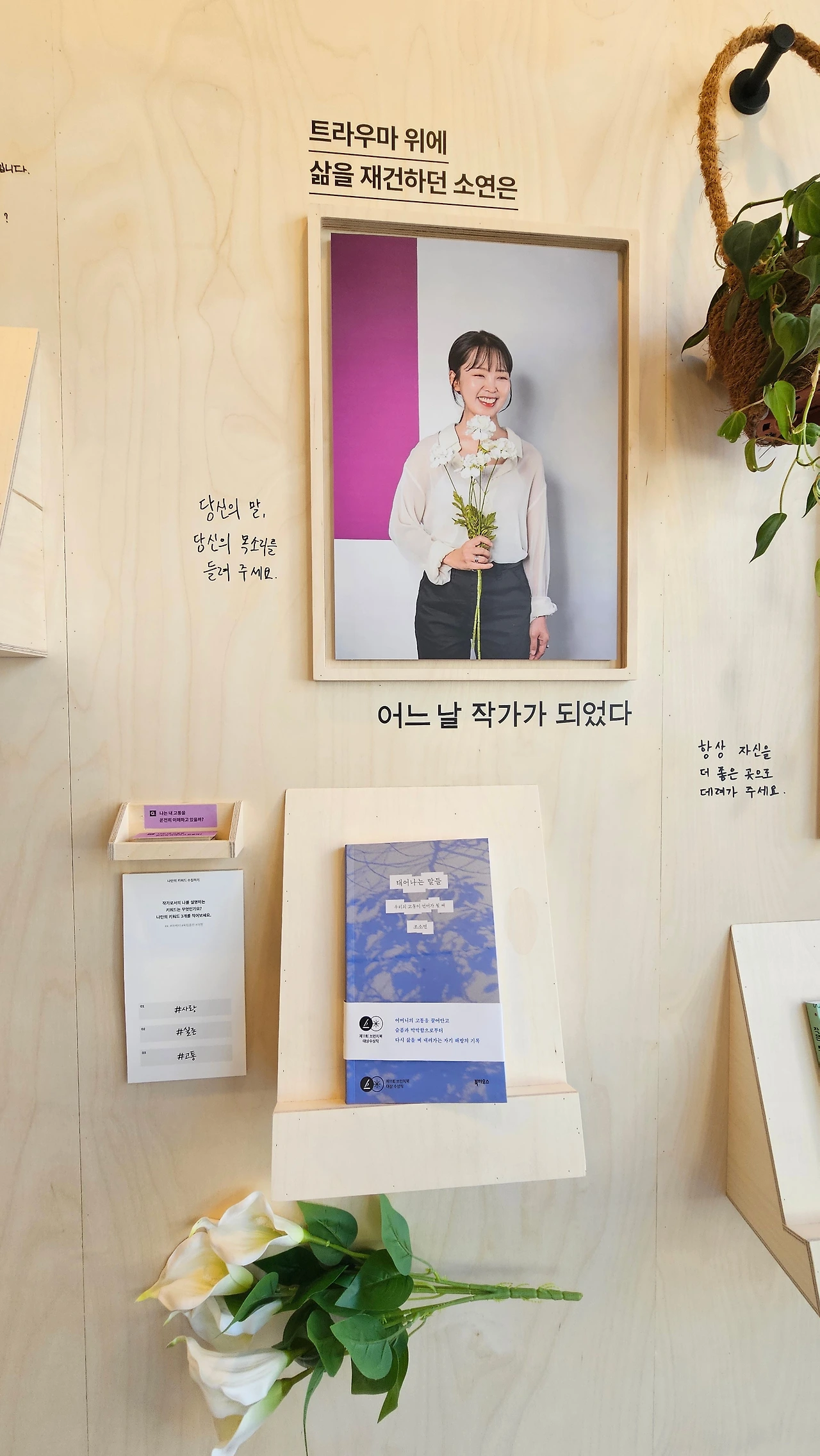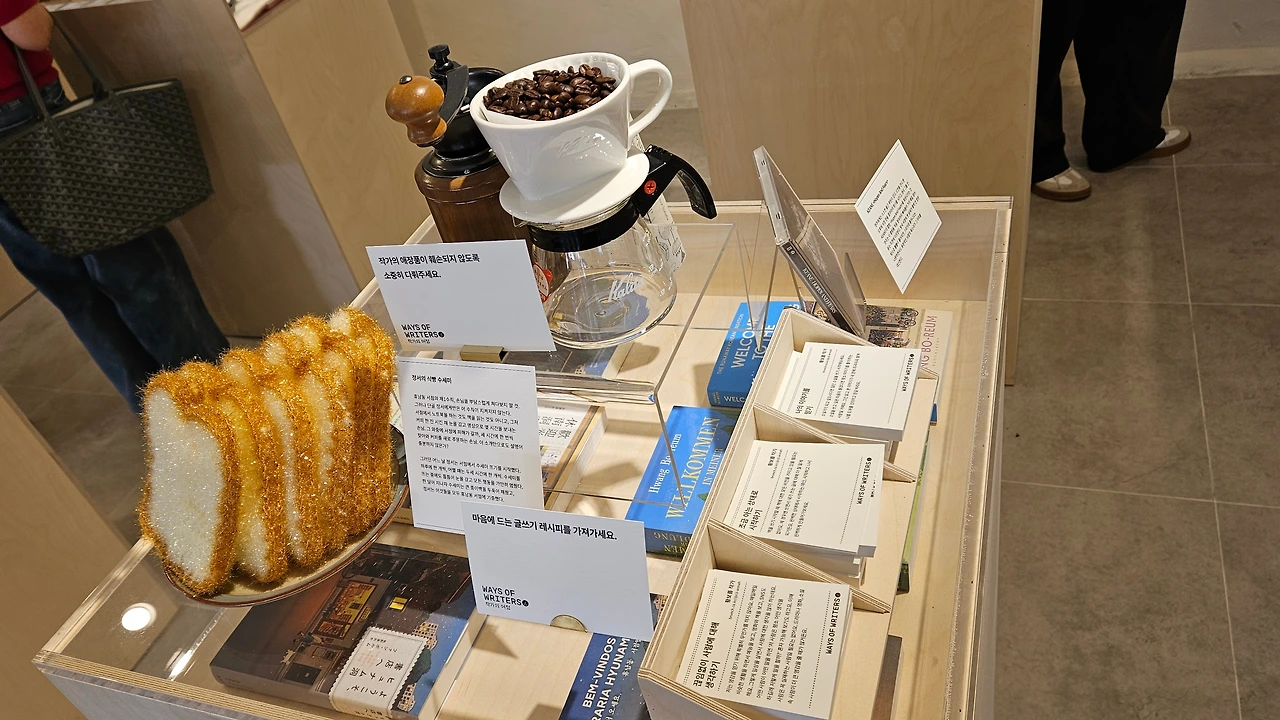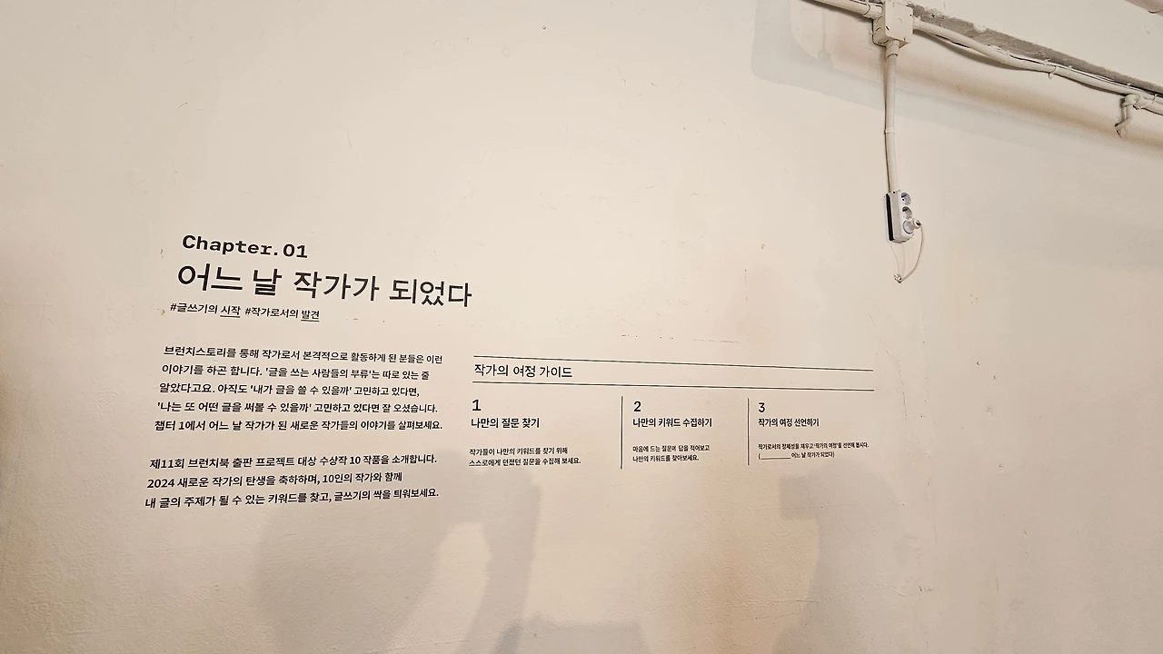 출입문 앞에 친절한 스태프의 안내에 따라 팔찌를 붙이고 'WAYS OF WRITERS 작가의 여정'으로 들어서니 다른 세상으로 들어온 것이 맞았습니다. 팝업을 기획하고 준비하셨을 브런치스토리팀의 노고의 향기가 가득해서 현기증이 일었습니다.