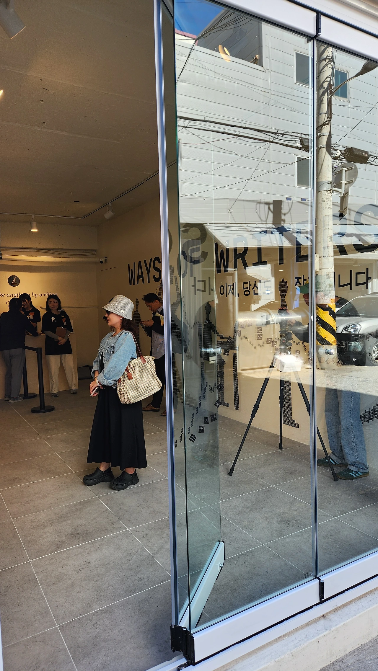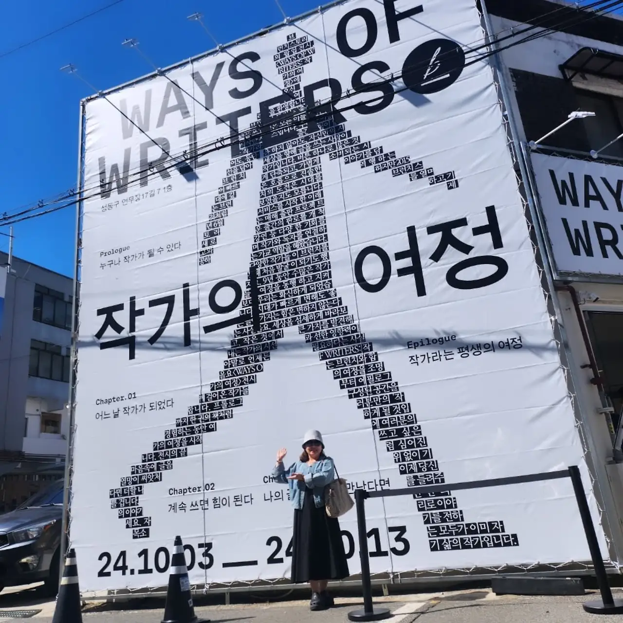 설레는 마음으로 힙하디 힙한 성수역에 도착해 내딛는 발걸음은 어찌나 가벼운지 살랑이는 10월의 바람을 타고 5분 만에 도착했습니다. 브런치스토리 소식에서 보았던 사진 속의 스튜디오가 Ctrl+V로 앞에 옮겨있으니 나도 모르게 "꺄오~~ 까오~~~"방언이 터져 나왔습니다. 다행히도 성수동의 힙한 열기에 나의 탄성은 버무려 저 바람결에 날아가고 발그레하게 붉어진 볼만 남았습니다. 스튜디오 외관의 'WAYS OF WRITERS 작가의 여정'은 어린 시절 상상하며 보았던 헨젤과 그레텔의 하우스처럼 현실적이지 않았습니다. 저 문안으로 들어가면 헨젤과 그레텔을 만날 수 있는 세상과 연결이 될 것만 같았습니다.