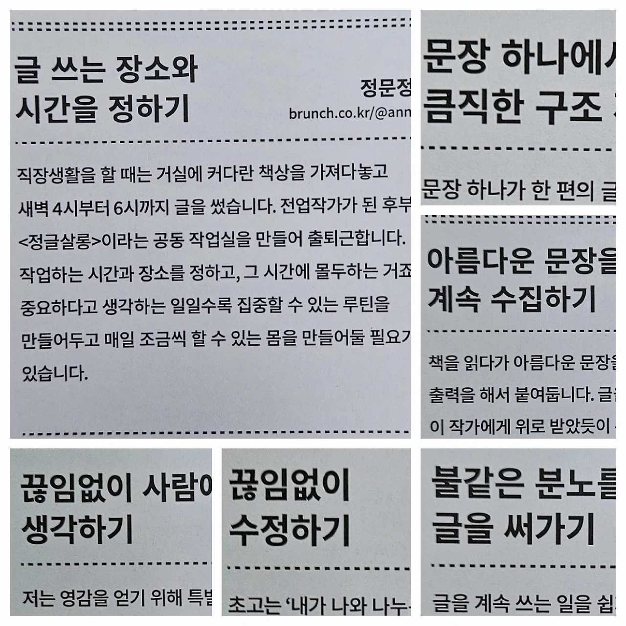 저는 글을 쓰고 싶은 영감과 불안이 늘 교차합니다. 글을 쓰다가도 훅 밀려드는 두려움이 몰려들면 손은 굳어집니다. 넋두리가 아닌, 감정의 쓰레기통이 아닌, 진심 어린 글쓰기를 하고 싶다는열망만 있을 뿐입니다. 노트북을 열지 못하고, 펜을 잡지도 못하는상태가 되어 버렸어요. 그런 나에게 "WAYS OF WRITER 작가의 여정'은 어두운 바다에 한줄기 등대로 비추었습니다.